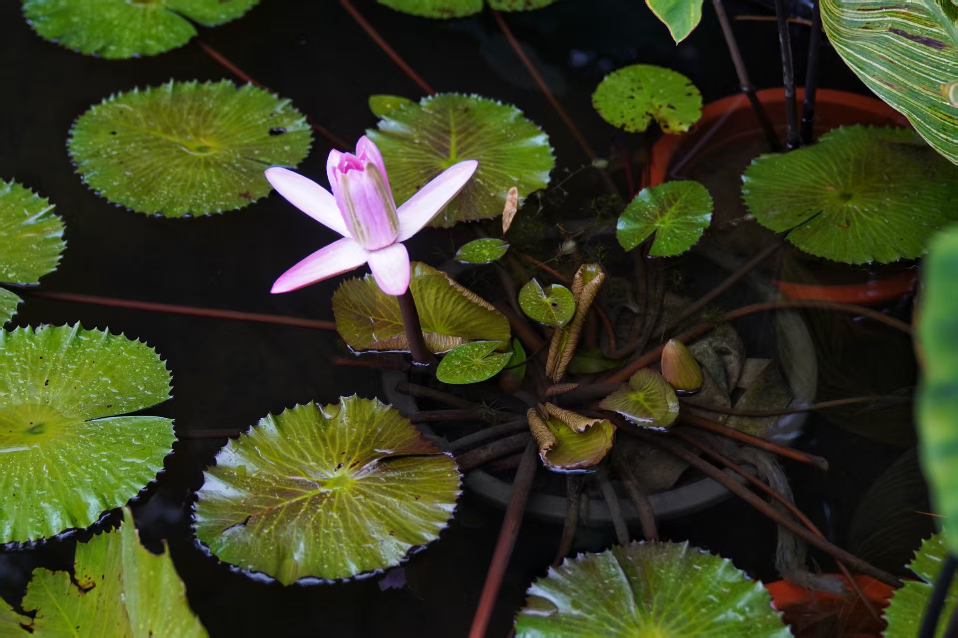 8月21日,紫竹院公园,文化季期间该园新添了500盆盆栽荷,为了防止孑孓滋生,公园每周对其进行两次换水处理。新京报记者 薛珺 摄