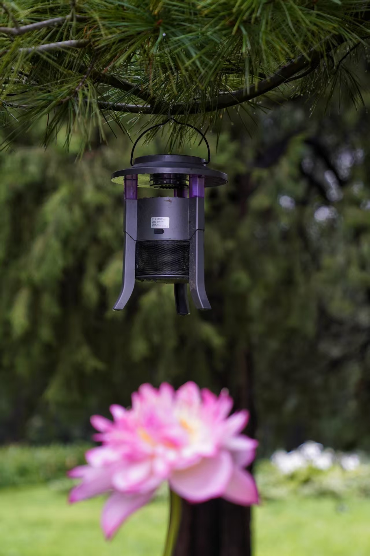 8月21日,紫竹院公园在夜间游客活动较为密集的区域安装灭蚊灯和粘虫板。新京报记者 薛珺 摄