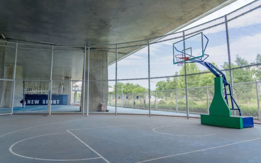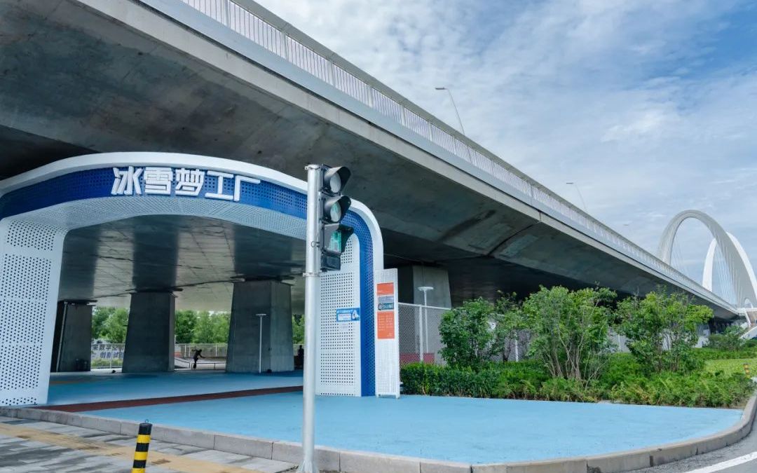 桥下空间自西向东主要由“冰雪梦工厂”“驿站”“雪花乐园”三个区域构成,分别承担球类运动空间、休息驿站、健身运动等功能。