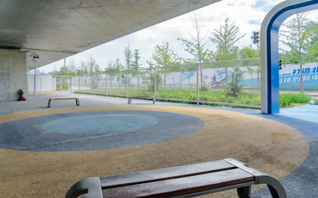新首钢大桥桥下空间的驿站区域。图/“北京石景山”微信公众号