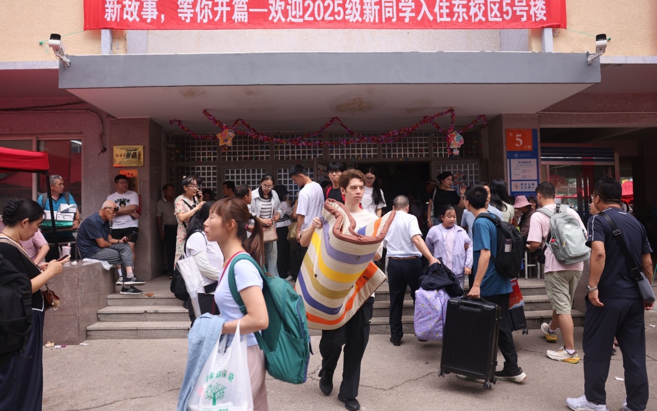 办手机卡、校园卡,办理宿舍入住、领学院物资……大一新生的宿舍大都在北京交通大学东校区,上午,该校区的迎新现场随处可见搬着床垫、拎着脸盆的家长们。值得一提的是,该校把“迎新市集”开到了宿舍区的小广场上,卫生纸、暖水壶、洗衣液等生活用品买完就可直接搬上楼。