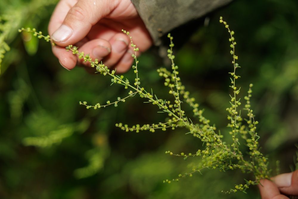 2025年8月21日,十八渡,巡护队员在观察植被,判断是否为碱蓬。巡护过程中,队员们也会观察植物、动物足迹和昆虫。