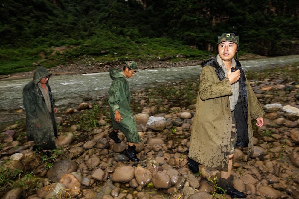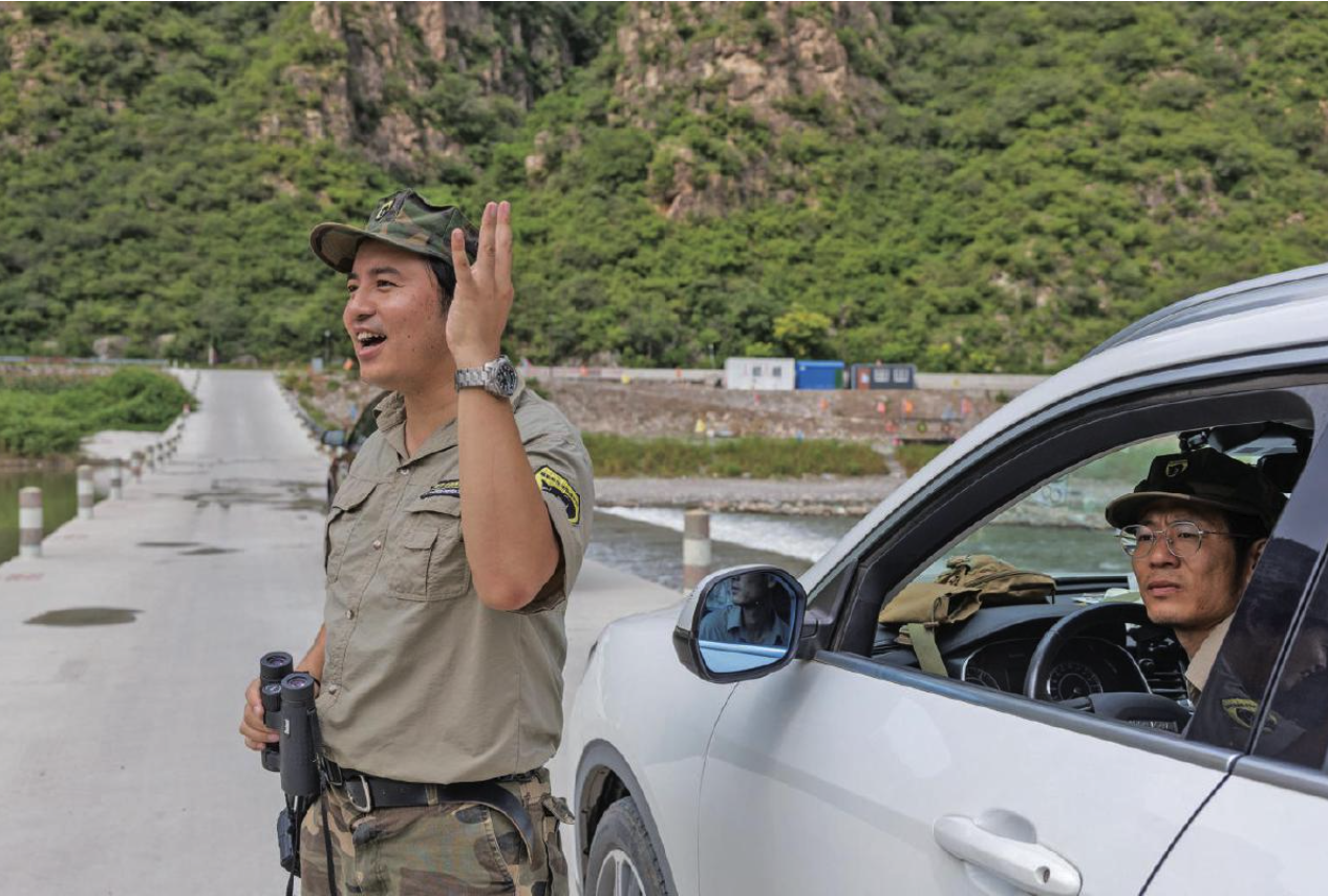 2025年8月21日,十八渡,巡护队员在拒马河查看河道情况。