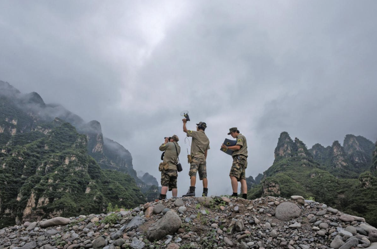 2025年8月21日,房山区十渡镇,巡护员们正在高点观测、记录。