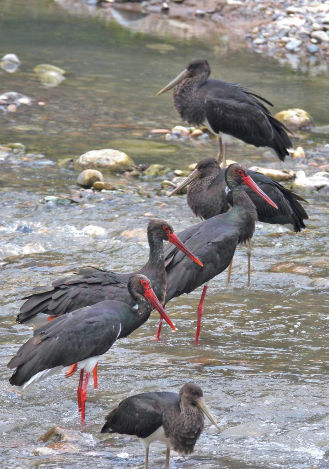 改变位置,巡护员们靠近一些观察黑鹳。李理介绍,离巢期的黑鹳幼鸟虽然体形已和父母相差无几,但羽色和喙、腿的颜色是主要的辨别点。它们看上去更像是成鸟的“褪色版”,标志性的“红唇”和“红腿”也还没有长成。今年,北京区域内新孵化的黑鹳数量达到17只,陆续离巢的幼鸟,已经开始独立的觅食生活。