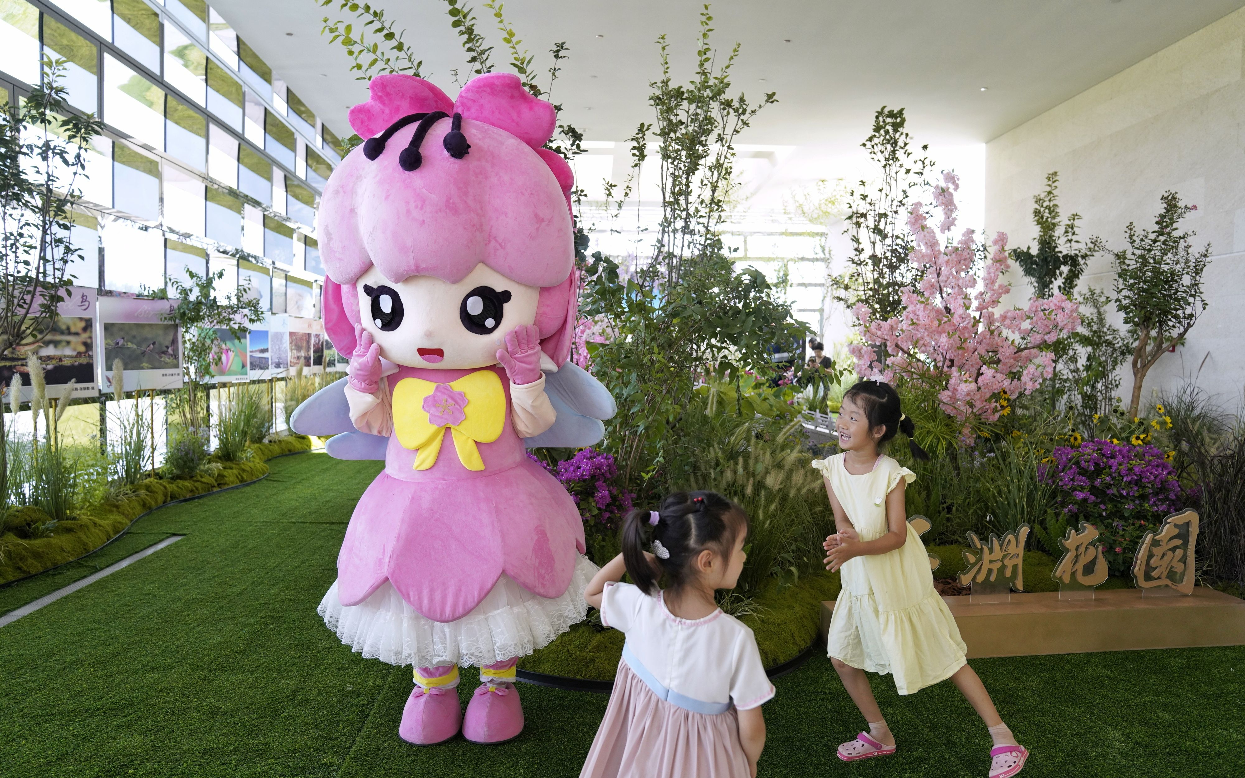 8月26日,路县故城遗址公园,玉渊潭公园“玉渊花园”主题文化周,小游客在和“小樱”人偶互动。新京报记者 薛珺 摄