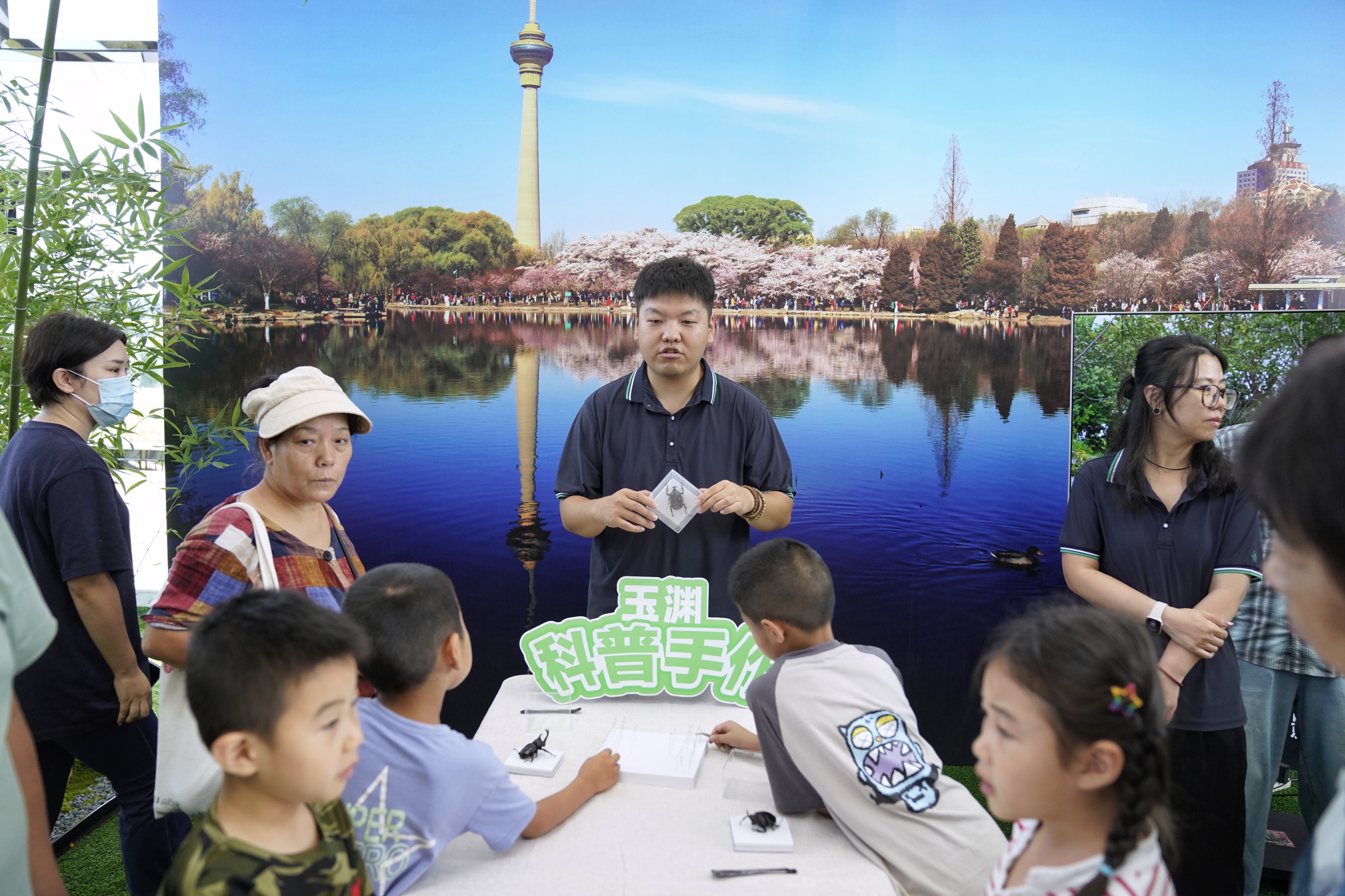 “玉渊花园”生态科普互动体验带领游客了解公园特色鸟类、昆虫和樱花知识。新京报记者 薛珺 摄