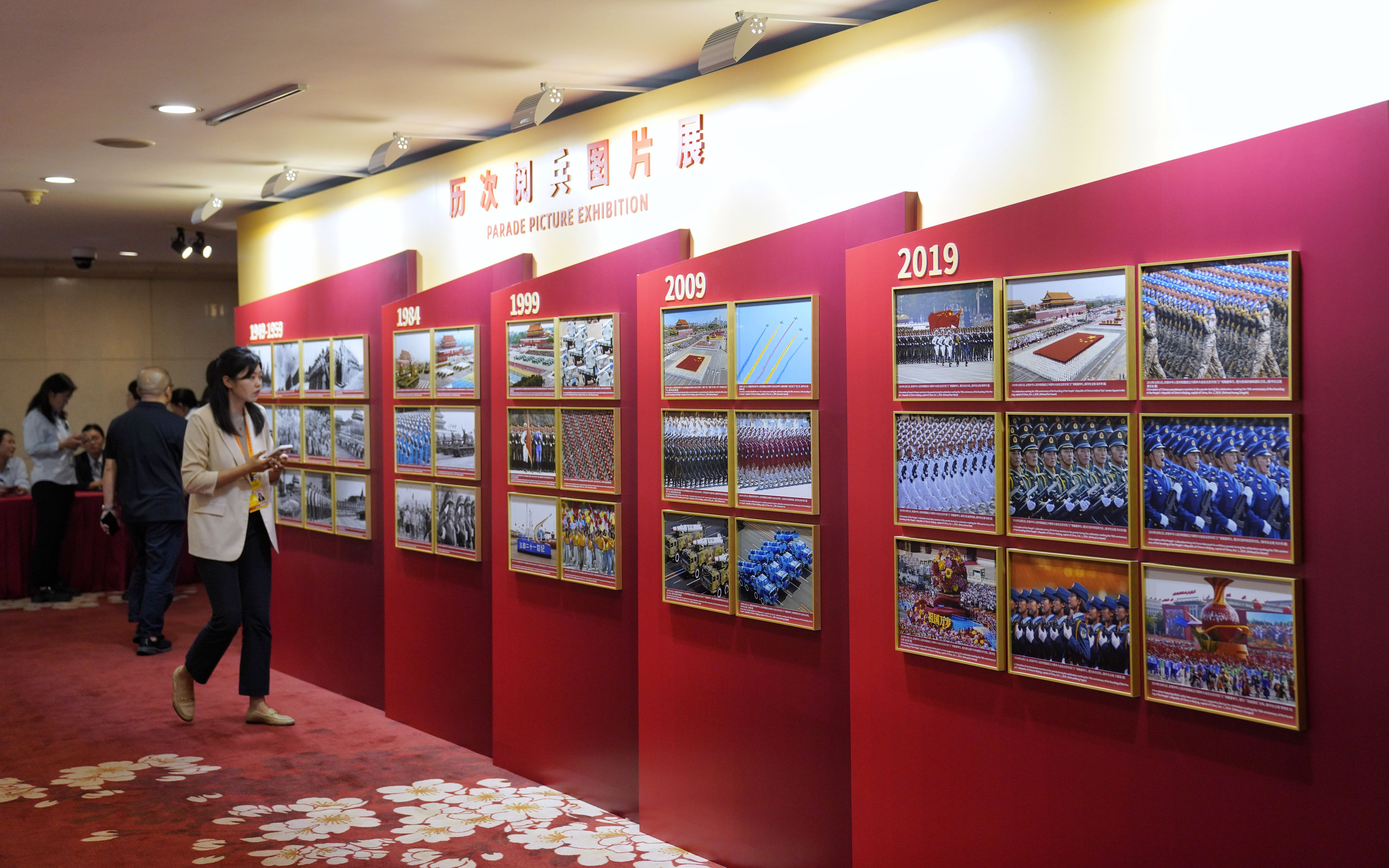 改造一新的新闻中心除常规媒体记者采访接待和新闻发布功能外,还设置了多块大屏轮播展示抗战胜利相关主题报道,在二楼,特别设置“历次阅兵图片展”,用69张图片展示了中国军队及军事装备现代化建设的发展历程。视频>>>