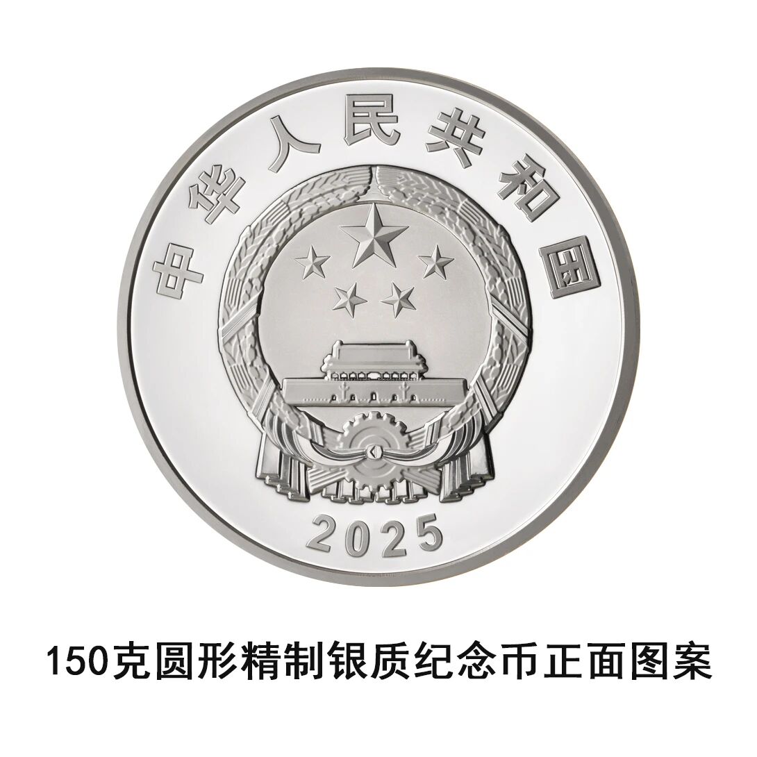 该套金银纪念币正面图案均为中华人民共和国国徽,国徽上方刊“中华人民共和国”国名,下方刊年号“2025”字样。