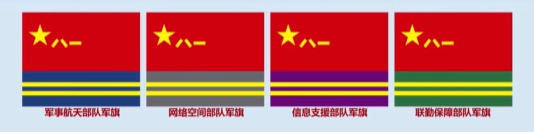 据央视新闻消息,今年八一前夕,军事航天部队、网络空间部队、信息支援部队、联勤保障部队4支兵种军旗旗面样式正式发布,标志着我军构建起以八一军旗为主体、军兵种军旗为补充的新时代人民军队军旗体系。