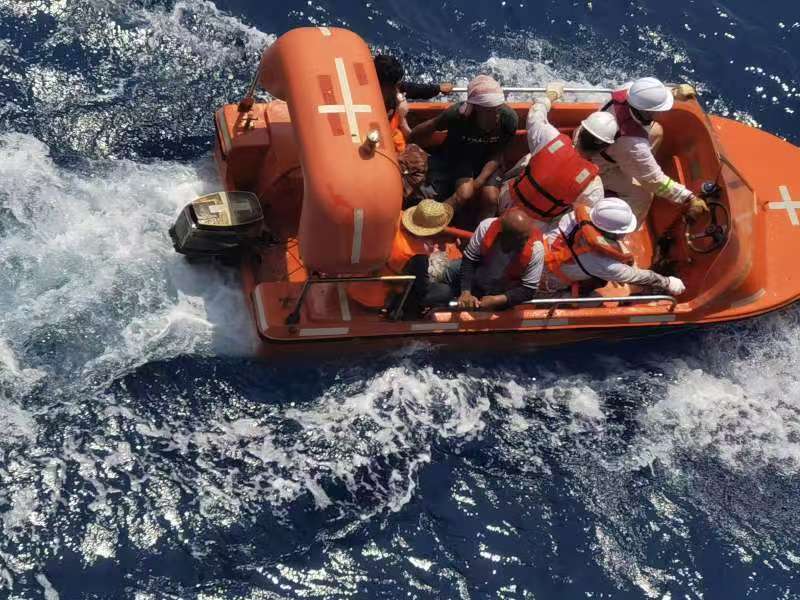 接到报告后,纪庆当机立断,启动应急救援程序,控制正在行驶的货轮减速,同时向公司上报情况,得到了即刻救助的指令。纪庆是20年出海经验的老船员,这是他第一次遇到船只下沉人员求救的险情,“在海事学校学习的时候就听老师说到过,在海上遇到人员求救出于人道主义应该救援,这也是一种本能反应。”