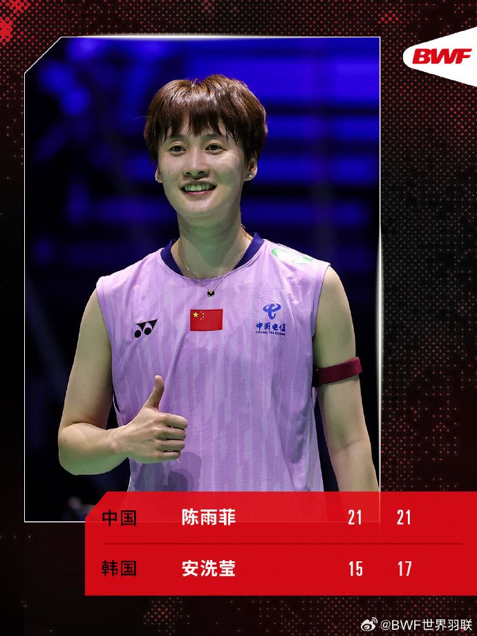 击败安洗莹,陈雨菲晋级巴黎羽毛球世锦赛决赛