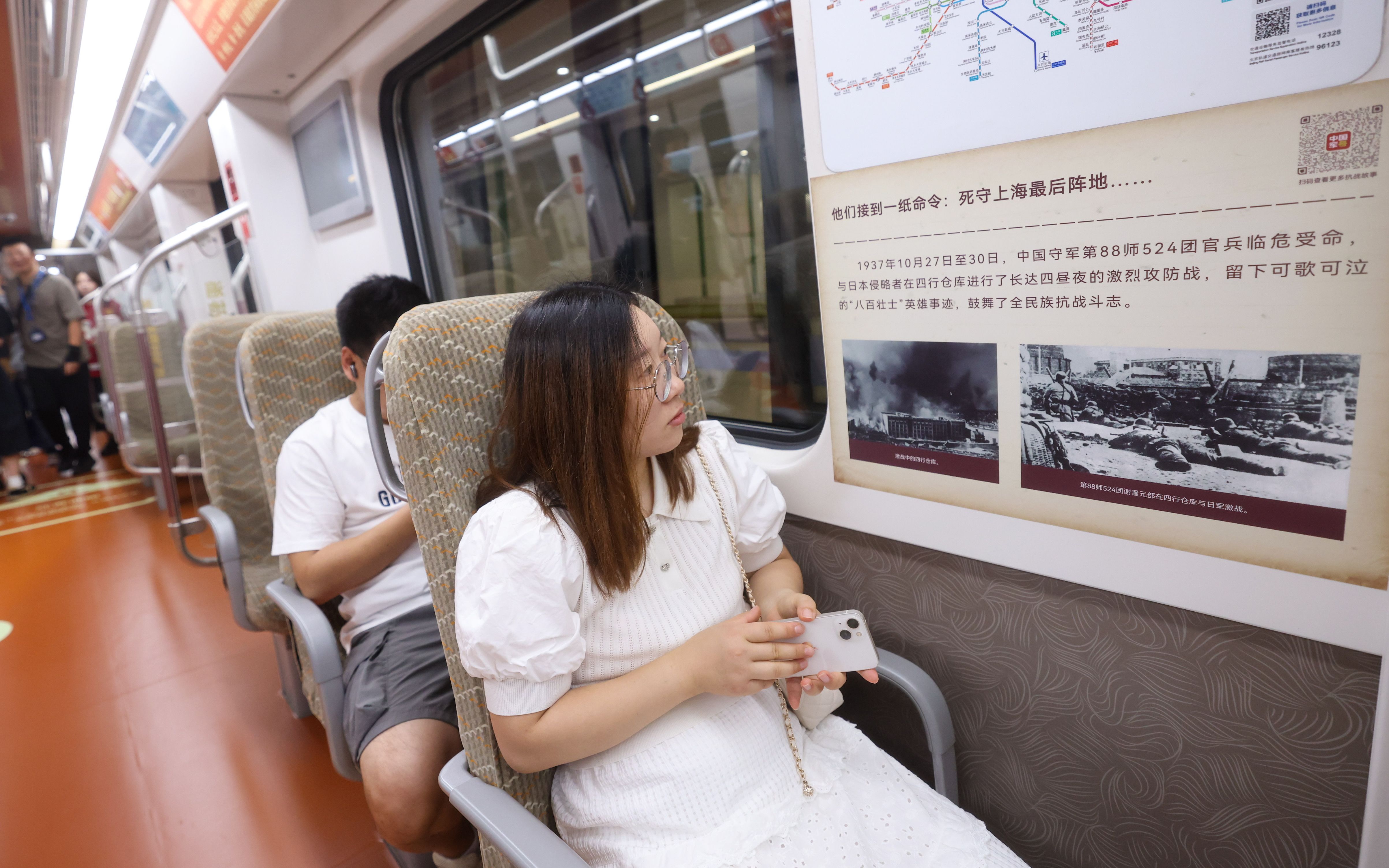 “我今天带着孩子来学习抗战历史,也让他感受一下先辈们的爱国主义精神。这趟专列提供了一个非常好的学习机会,坐车的同时就能了解这么多历史。”市民孙先生告诉记者,他发现这个专列上的内容很全面,涵盖了全民族抗战的诸多领域。
