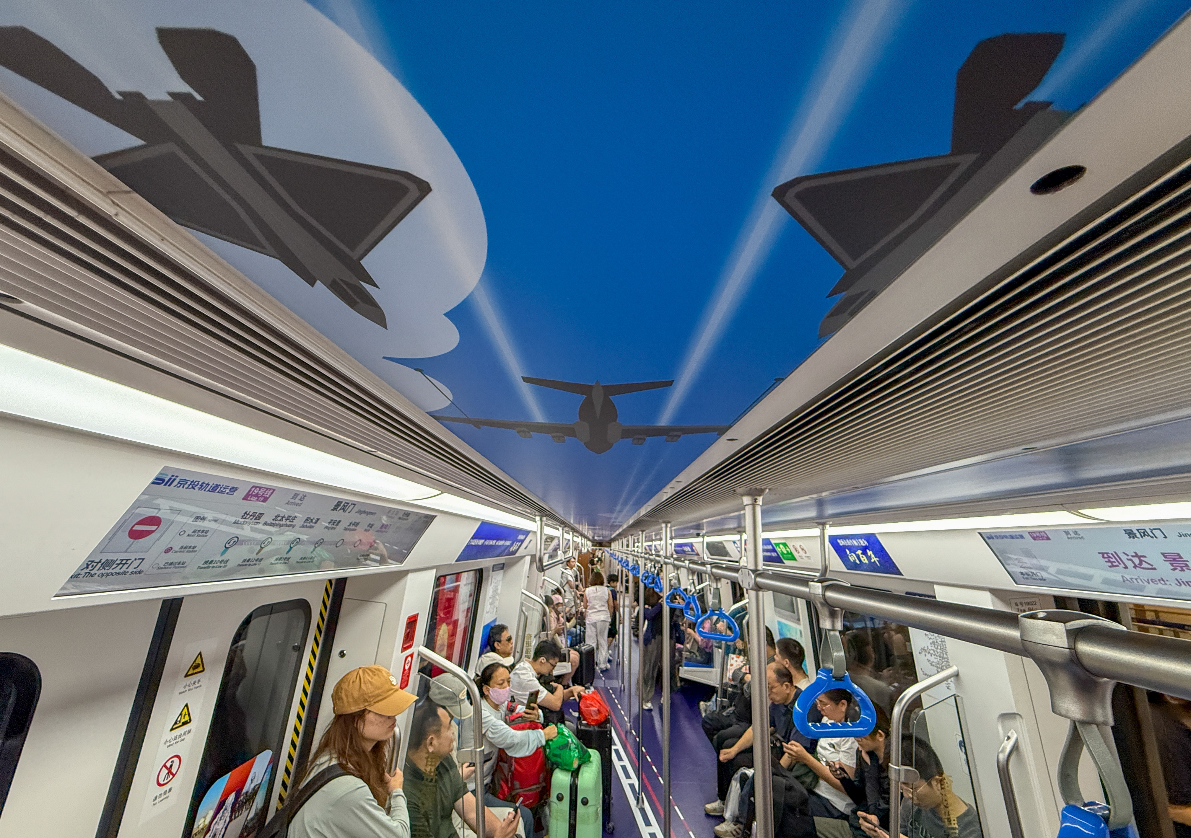 比如,在地铁19号线草桥站站厅设置“伟大贡献——中国与世界反法西斯战争”主题展,在草桥站站台推出“民族先锋 中流砥柱——中国共产党抗战英烈事迹展”,在草桥站换乘通道策划“守护和平”军事装备图片展示;在平安里站落地“大刀将军赵登禹”专题展示;燕房线阎村东站呈现“平西抗战 薪火相传”主题展示;大兴机场线草桥站E口穹顶处悬挂国旗。
