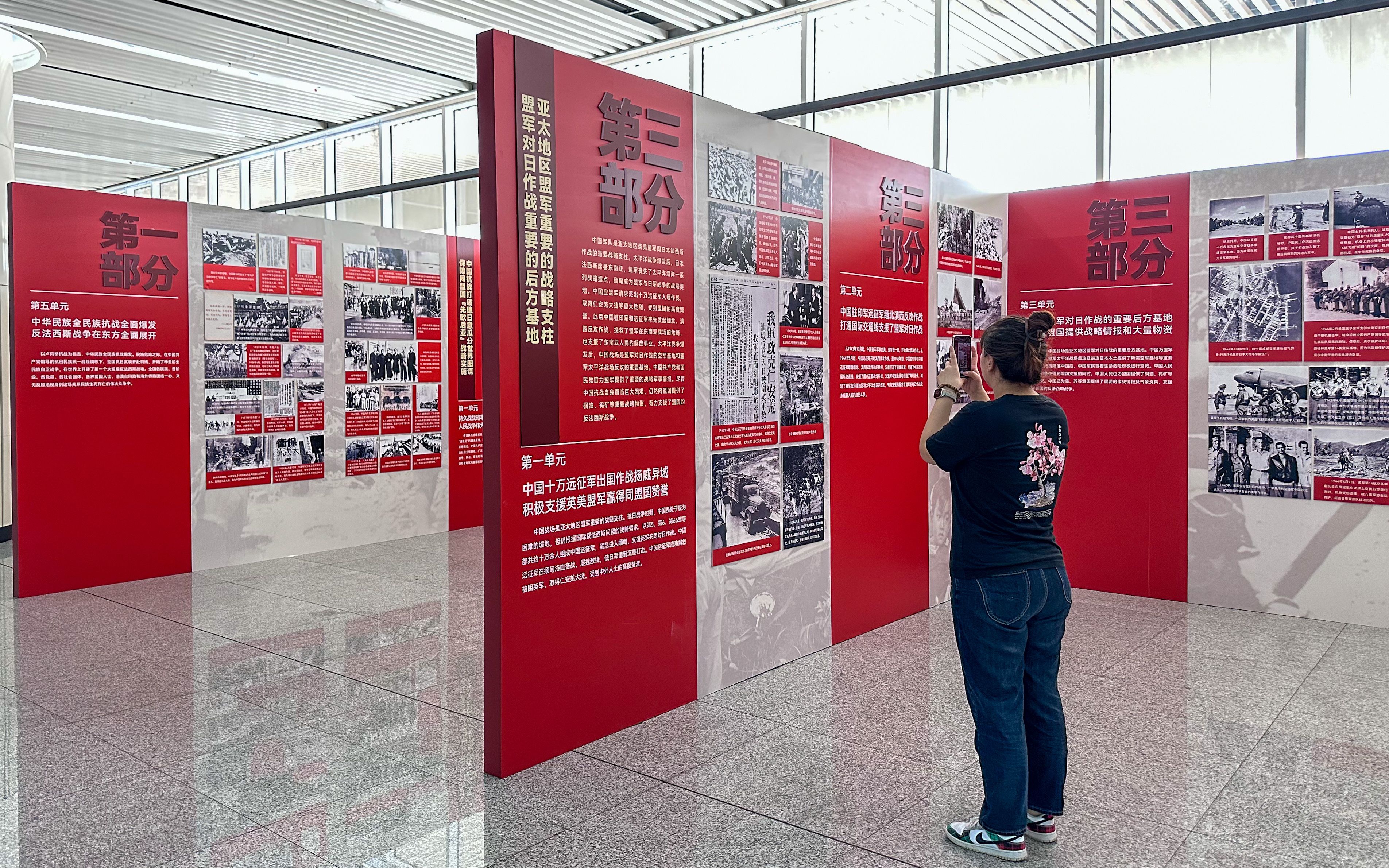 记者在现场看到,专列对抗战中的英雄烈士事迹进行了重点介绍,像是被毛主席称赞“毫不利己、专门利人”的白求恩医生、率领东北军民在白山黑水间抗战的东北抗联英烈杨靖宇将军、牺牲在战斗一线的八路军副参谋长左权将军等。同时,专列上还能看到航母、战机等新时代国防重器。