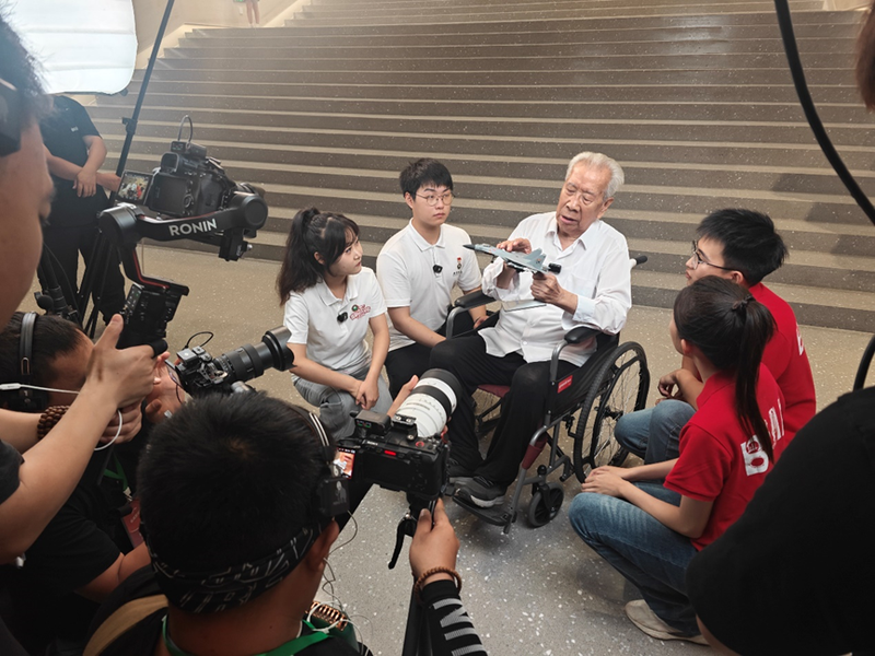 活动还特别邀请98岁的音乐家陈复君、95岁的罗昌遐及101岁的抗战老兵刘茂盛通过短片亲述峥嵘岁月。短片《战场上的音乐家》记录陈复君回忆其师贺绿汀创作《游击队歌》的历程,向同学们讲述延安时期的文艺力量,完成跨越时空的艺术传承。刘茂盛老人在同学们的陪伴下参观了中国人民抗日战争纪念馆,追忆抗战时期和战友们一起浴血奋战,令在场所有人无不动容。