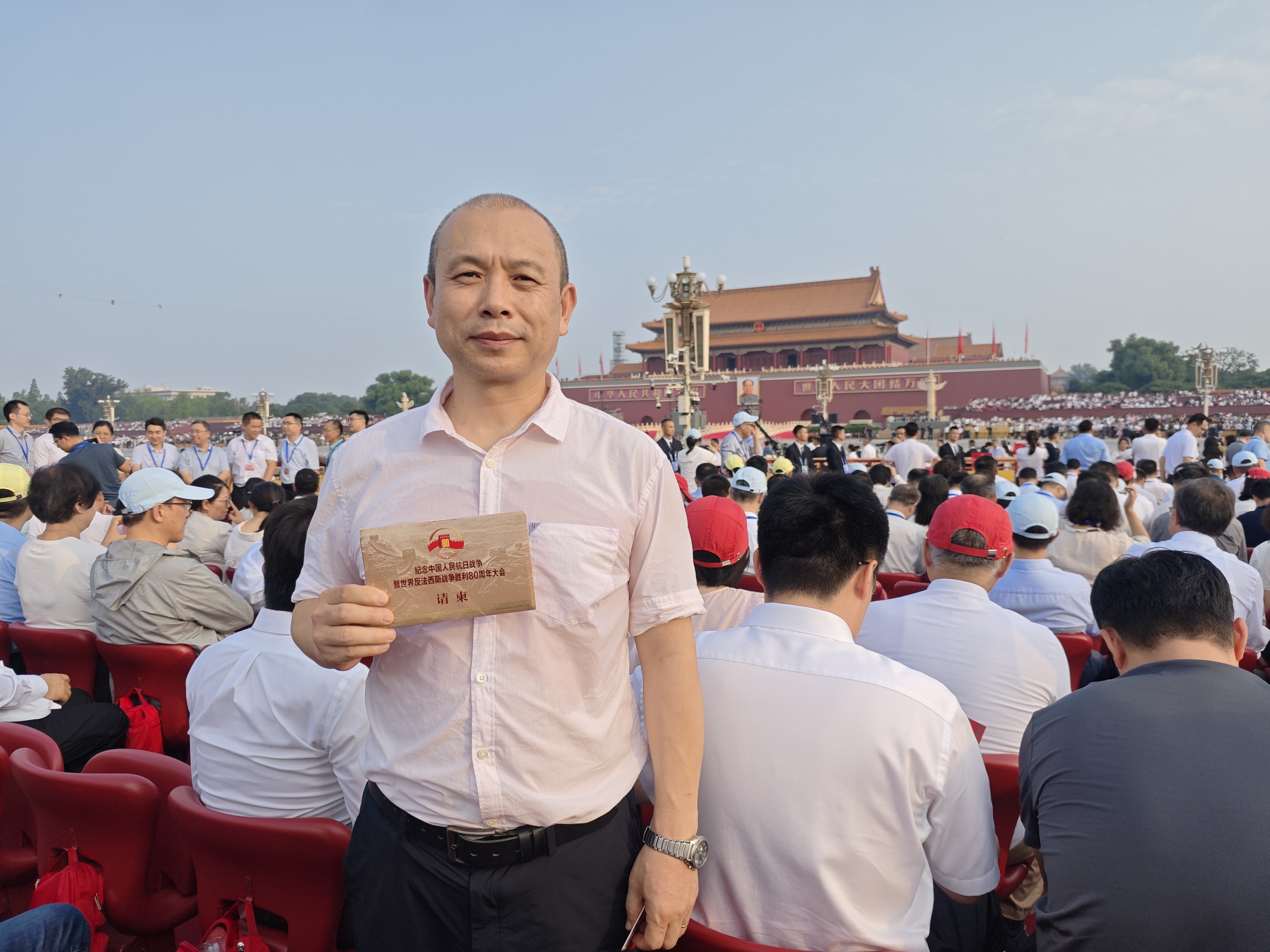 新京报讯(记者曹晶瑞)9月3日上午,纪念中国人民抗日战争暨世界反法西斯战争胜利80周年大会在北京天安门广场隆重举行,平谷区退役军人事务局优抚科科长杨亚明和平谷区部分英烈亲属代表一起乘车前往天安门广场观礼。