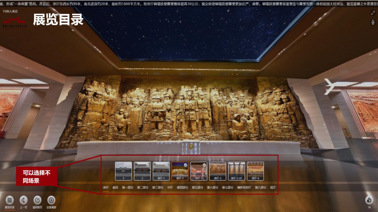 网上展馆采用720全景模式,相较于传统720模式实现了“以观众为中心”的创新和改进。集成了AI数字人、Web3D、720°全景拍摄、3D建模等多种技术,生动展现了在中国共产党倡导建立的抗日民族统一战线旗帜下,中国人民舍生忘死、百折不挠、共御外辱,以铮铮铁骨战强敌、以血肉之躯筑长城,通过长达14年的浴血抗战,取得近代以来反抗外敌入侵的第一次完全胜利的光辉历程。网上展馆数字人导览式全程引导讲解,为观众提供沉浸式的参观环境,让观众仿佛置身于实体展厅之中。