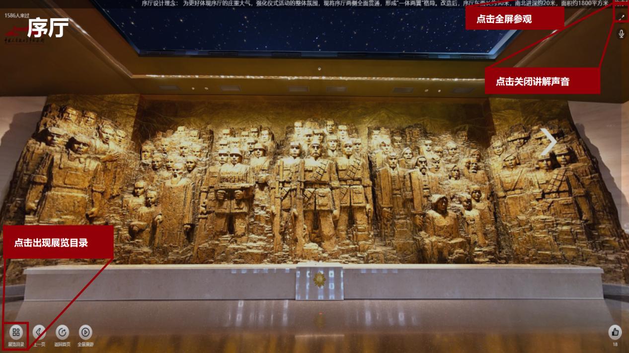 PC端浏览器搜索“www.chinavictory.com”进入中国人民抗日战争纪念馆官方网站(中国抗战胜利网)首页即可进入,沉浸式观看。