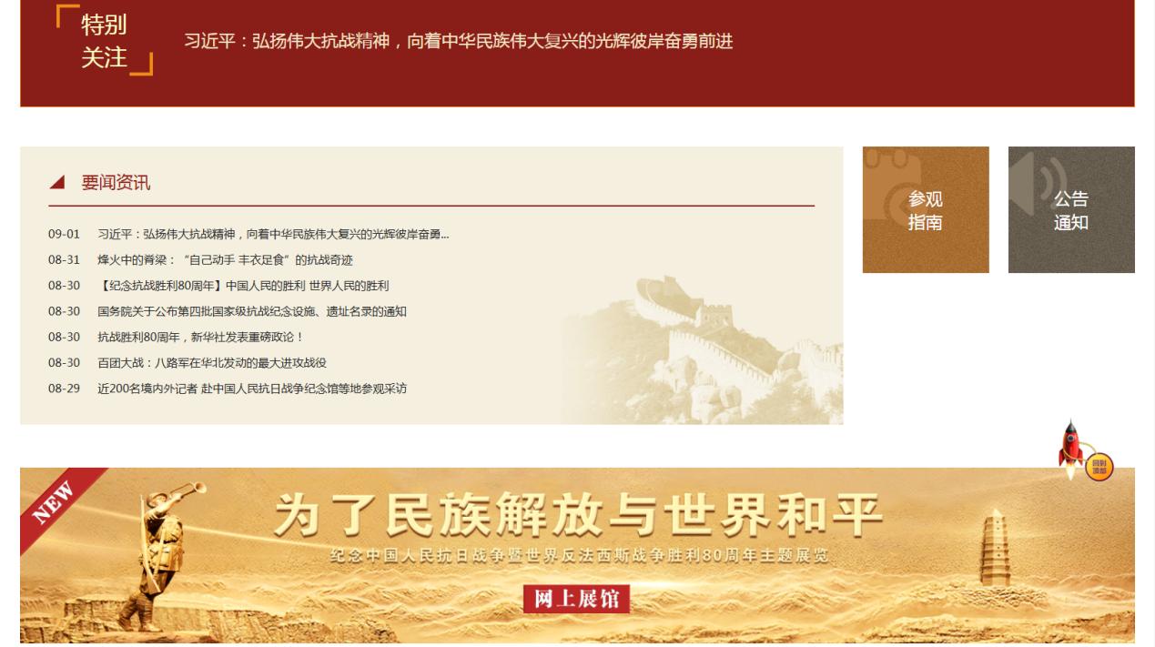首页中间位置。中国人民抗日战争纪念馆 供图