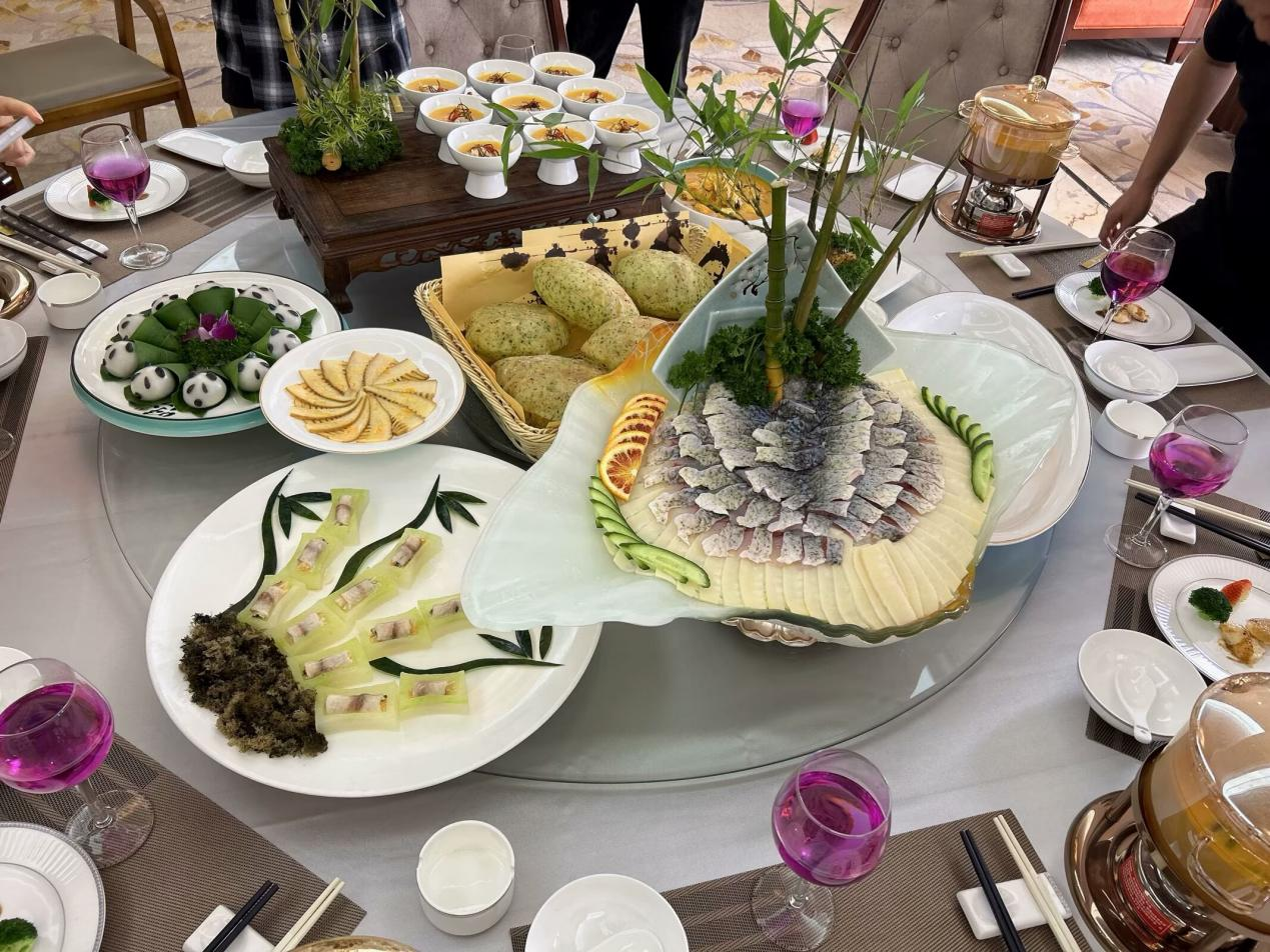 “早在2015年,我们酒店就推出‘熊猫宴’,还专门定制配套餐具。”高萍回忆,去年,酒店对“熊猫宴”进行2.0升级,不仅细化了菜品食材构成、精确克重配比、科学搭配营养元素,还赋予品牌文化,创新设计出竹海荪平、翠竹报春、凤舞竹林等31道菜肴。