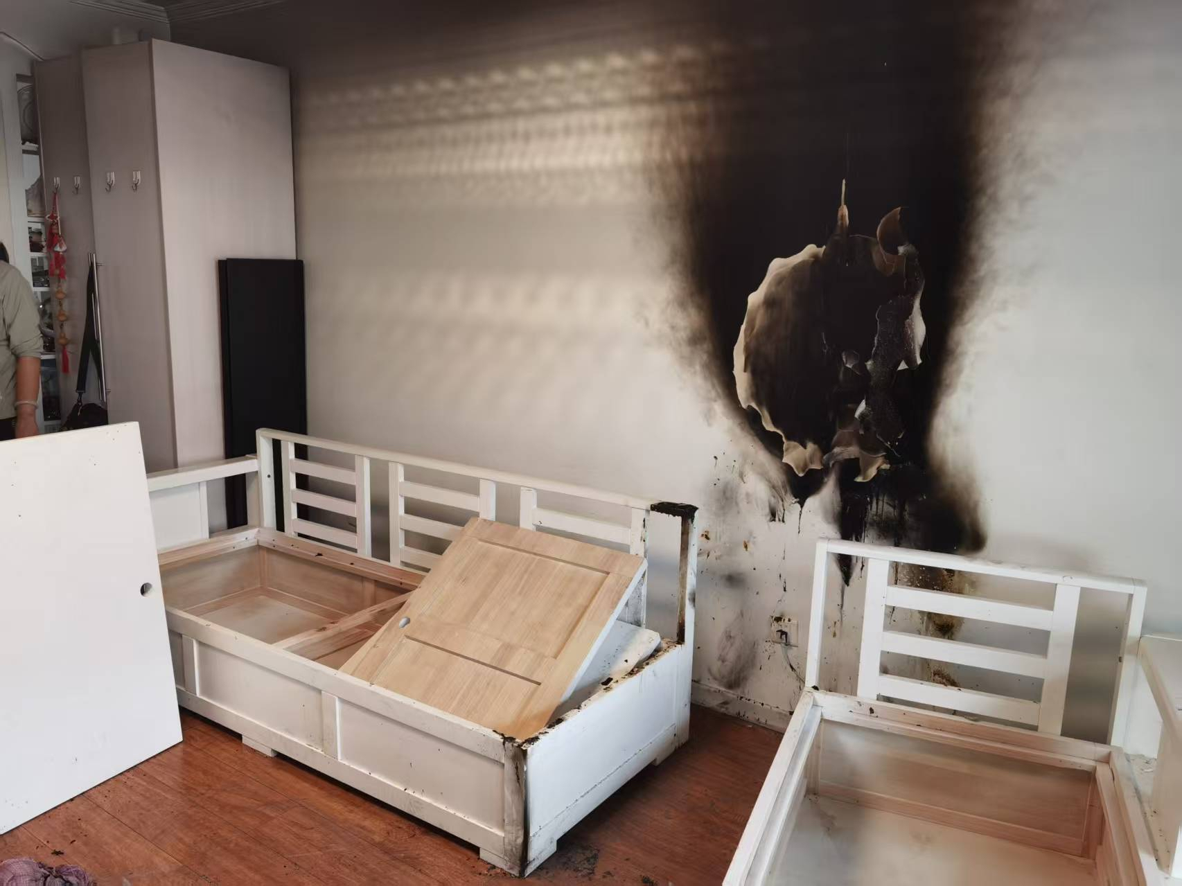 新京报记者了解到,8月23日15时29分,该业主在小区遛弯时接到丈夫紧急来电,称家中客厅沙发垫着火。业主立即返回家中,发现明火已被丈夫用水扑灭。