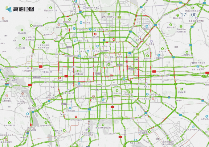 晚高峰期间,城区环路部分路段,万泉河路至圆明园西路、通惠河北路、莲石东路等城区道路出城方向车流集中,京藏高速、京承高速、京通快速、京港澳高速、机场高速等高速公路出京方向将出现潮汐车流,高峰时段为17:00—20:00,限行尾号4和9的周五晚高峰交通压力将尤为突出。