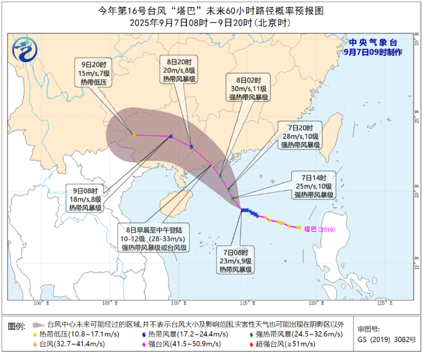 8日凌晨到中午台风“塔巴”将在广东登陆 南海及华南有强风雨
