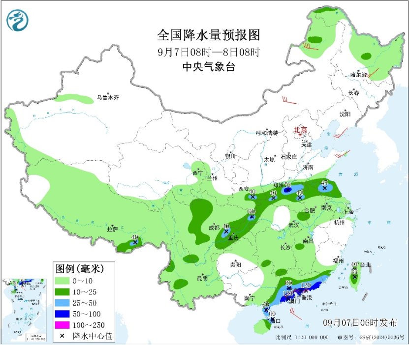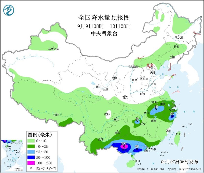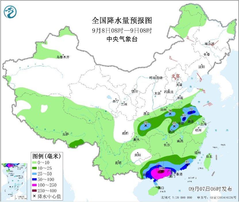 降水方面。7日至10日,广东、广西及云南南部自东向西先后有大到暴雨,其中广东南部、广西南部等地部分地区有大暴雨,局地特大暴雨(250~400毫米);部分地区并有短时强降雨、雷暴大风等强对流天气。