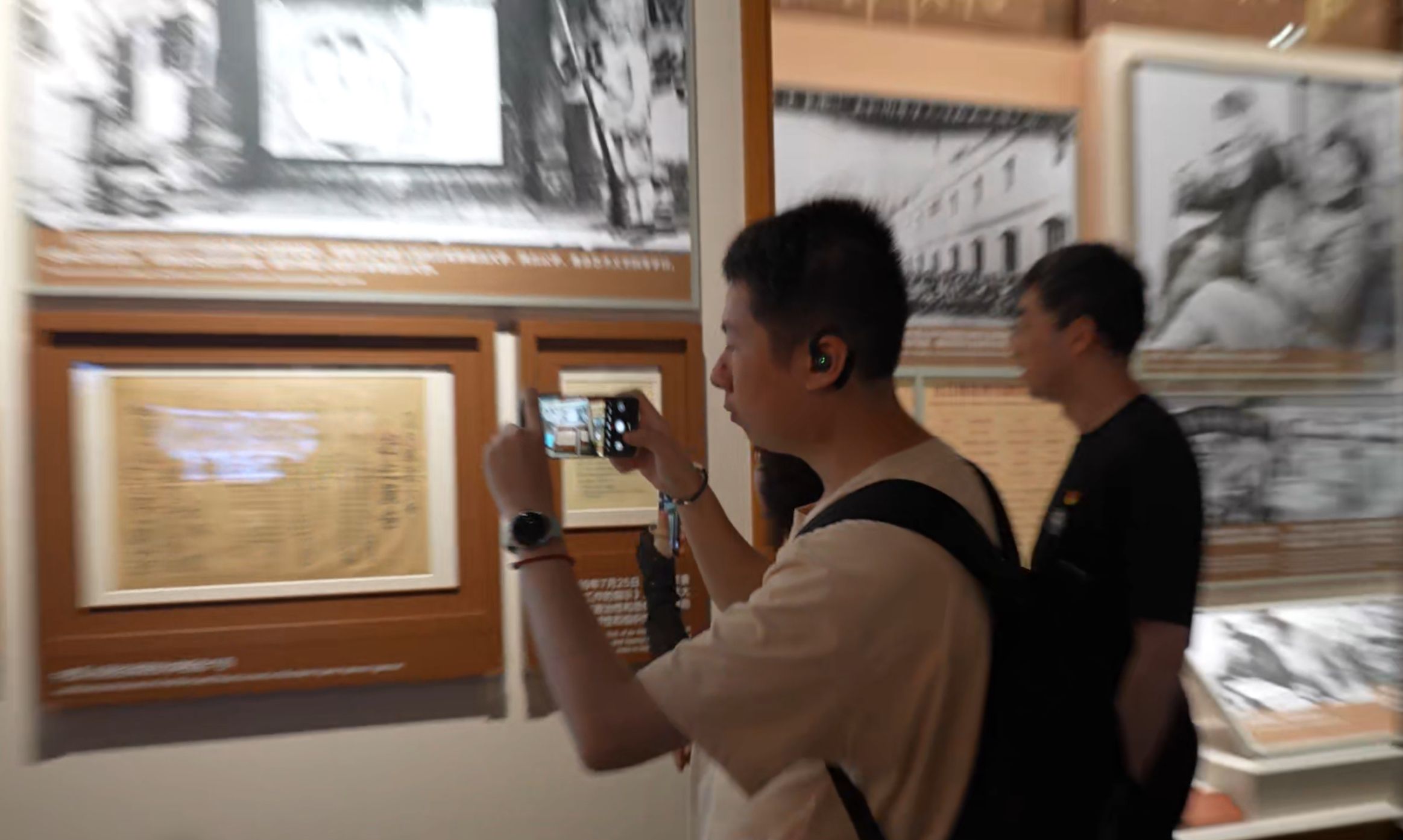 面对展柜里锈迹斑斑的武器和展墙上定格苦难的照片,北京电影学院影像传媒学院广播电视编导专业的高格格同学频频举起手机和相机。她希望借着活动的契机,用青年的视角,让更多同龄人看见历史的细节,明白我们今天的安稳,从来都不是理所当然。