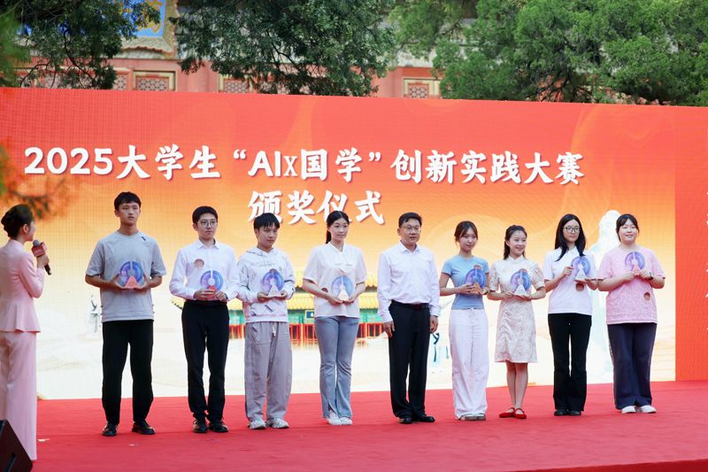 活动现场,大学生“AI x 国学”创新实践大赛获奖者获颁荣誉证书。
