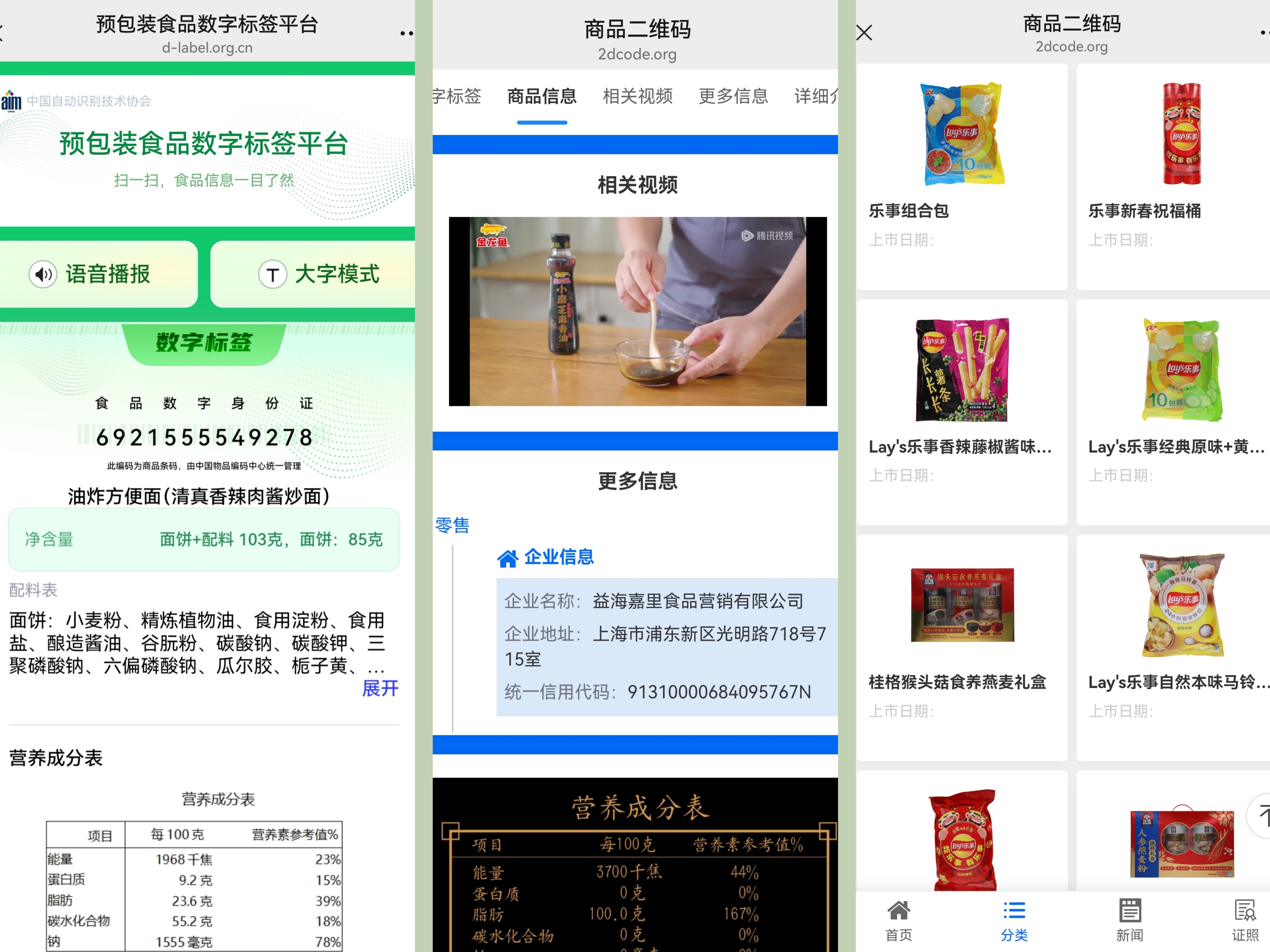 结合2025年3月发布的《食品安全国家标准 预包装食品标签通则》(GB 7718-2025)可知,数字标签是指食品包装上采用二维码等信息化手段展示的食品标签。消费者扫描数字标签二维码后,可通过手机等移动设备了解食品标签信息。同时,借助数字标签的页面缩放、语音识读、视频讲解等功能,实现食品标签信息“可听、可播、可放大”,有效解决标签信息“找不到、看不清、读不懂”的问题。阅读全文>>>