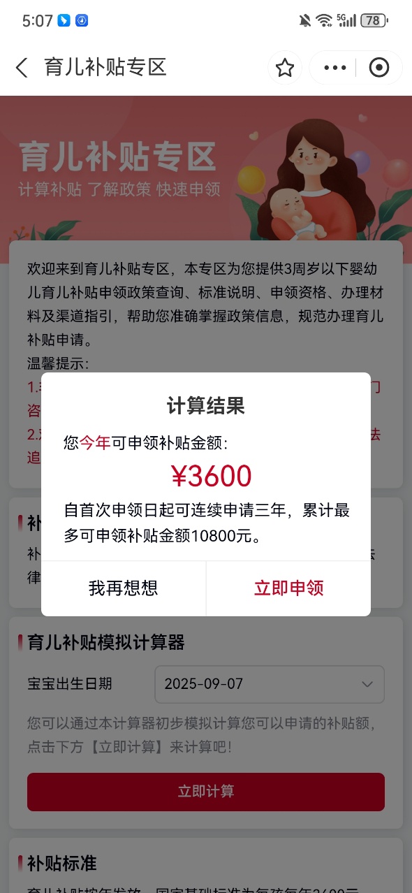 支付宝北京市育儿补贴专区,育儿补贴模拟计算。支付宝截图