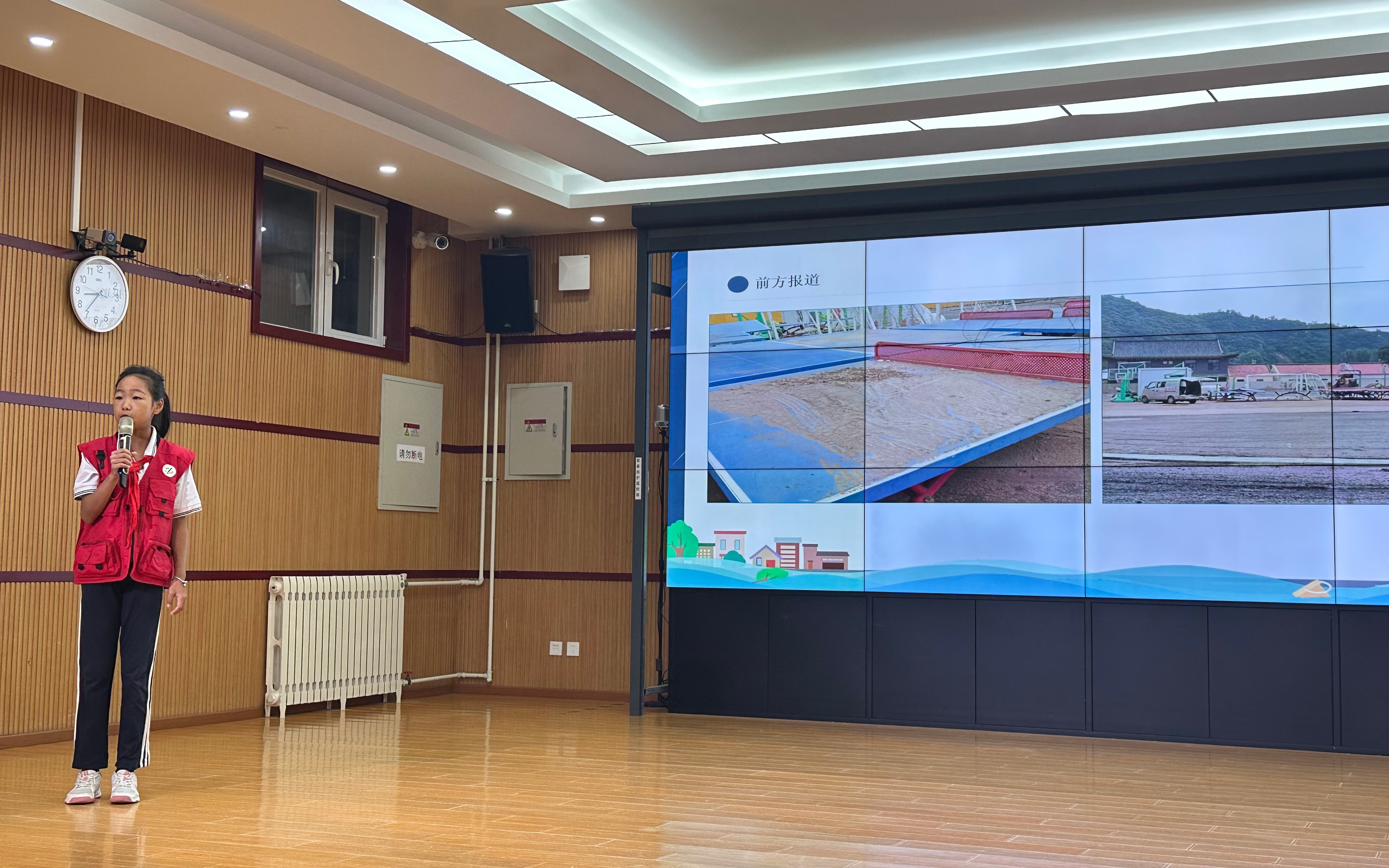 值得一提的是,活动前期,朝阳区实验小学组织小记者深入冯家峪镇中心小学,进行了实地探访,为全校师生带来了一手的鲜活材料,并在此次主题活动中现场分享感悟。走进冯家峪镇中心小学,小记者们看到的是洪水肆虐后的场景:操场满是淤泥,教学楼墙壁上的水渍清晰可见,教室里的桌椅也有不同程度的损坏。“当时操场上还有一张被洪水从高处冲下来的乒乓球台,可见洪水之凶猛。”小记者明怡婷回忆道。