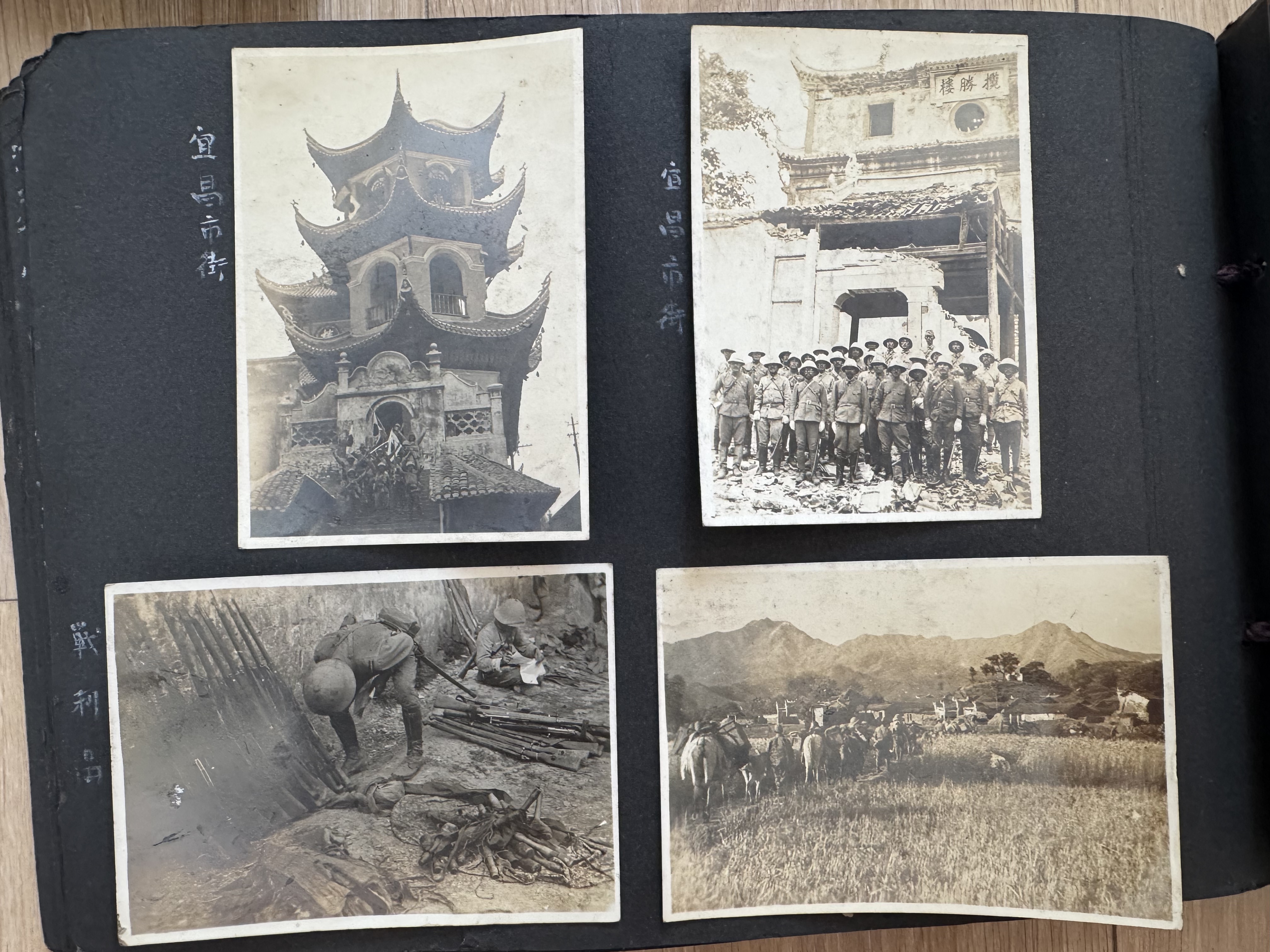 两本相册中,有十几张与侵华日军相关的照片,均为原件,其中明确标注“宜昌”的共10张,初步判断为日本战地记者拍摄。这些珍贵的历史照片被马成捐赠给宜昌博物馆,8月15日,它们由宜昌博物馆公开发布,目前,博物馆已完成整理、分类和登记工作,将充实到“近代宜昌”常设展览单元中,成为日军侵华的铁证。