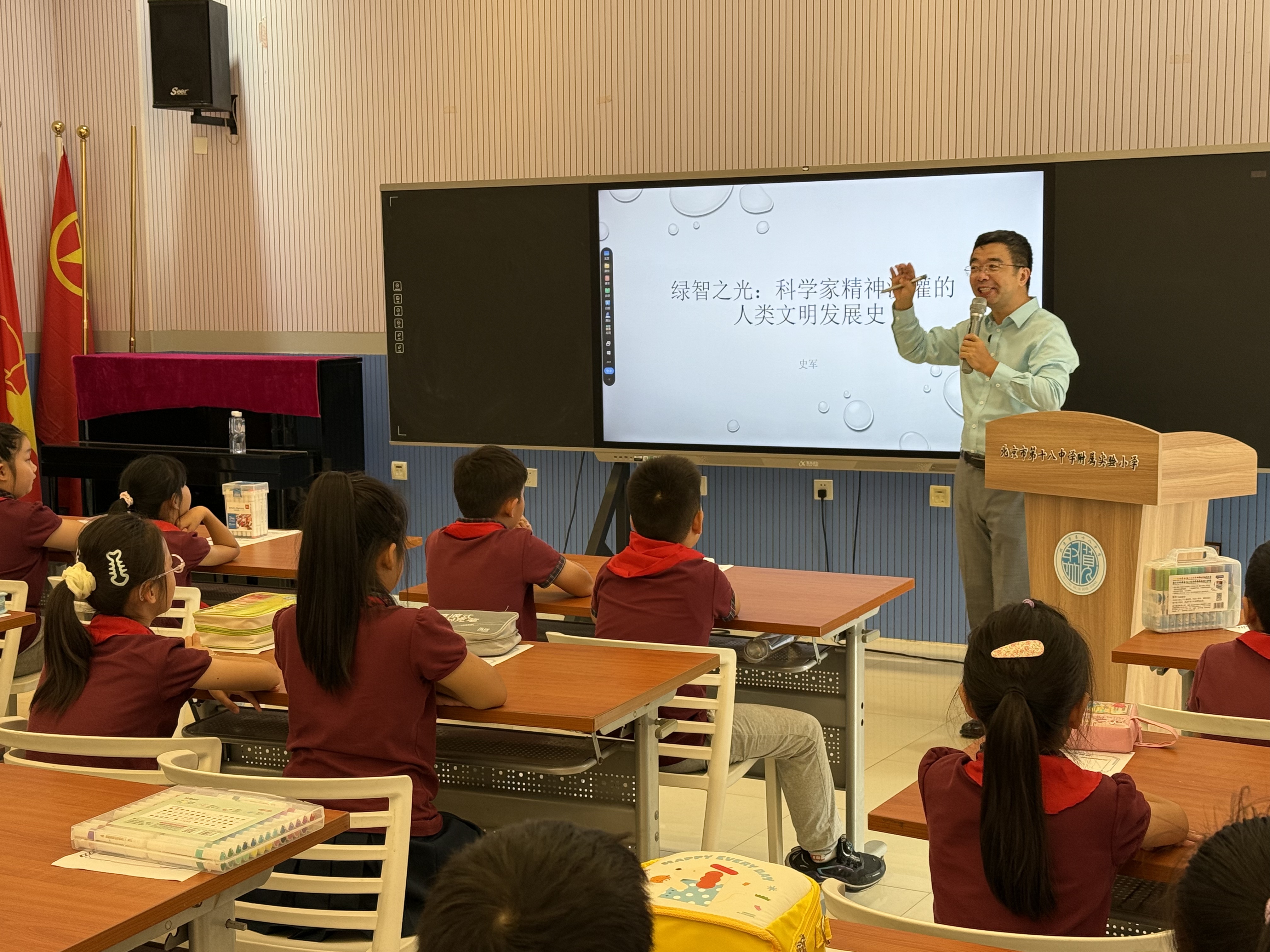 9月4日,中国科学院植物学博士史军走进北京市第十八中学附属实验小学,讲授科学家精神。学校供图