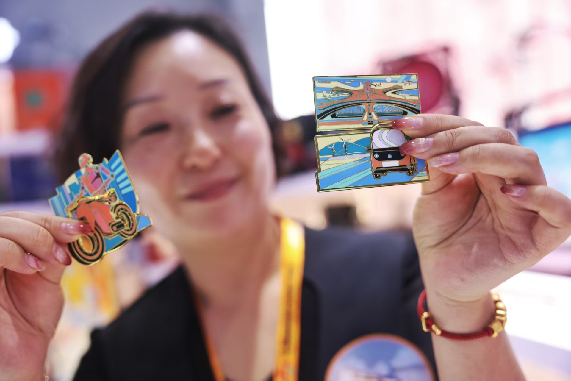 与此同时,大兴展区还是文化爱好者的“宝藏打卡地”,亦庄镇带来了亦花园的盲盒冰箱贴,北京野生动物园的小熊猫、卡皮巴拉主题文创,中医药博物馆的香囊,泓文博雅艺术馆的木艺装饰等,一件件非遗作品与特色文创,既展现了大兴的文化底蕴,也传递出“大兴国际旅游度假区”的品牌魅力。
