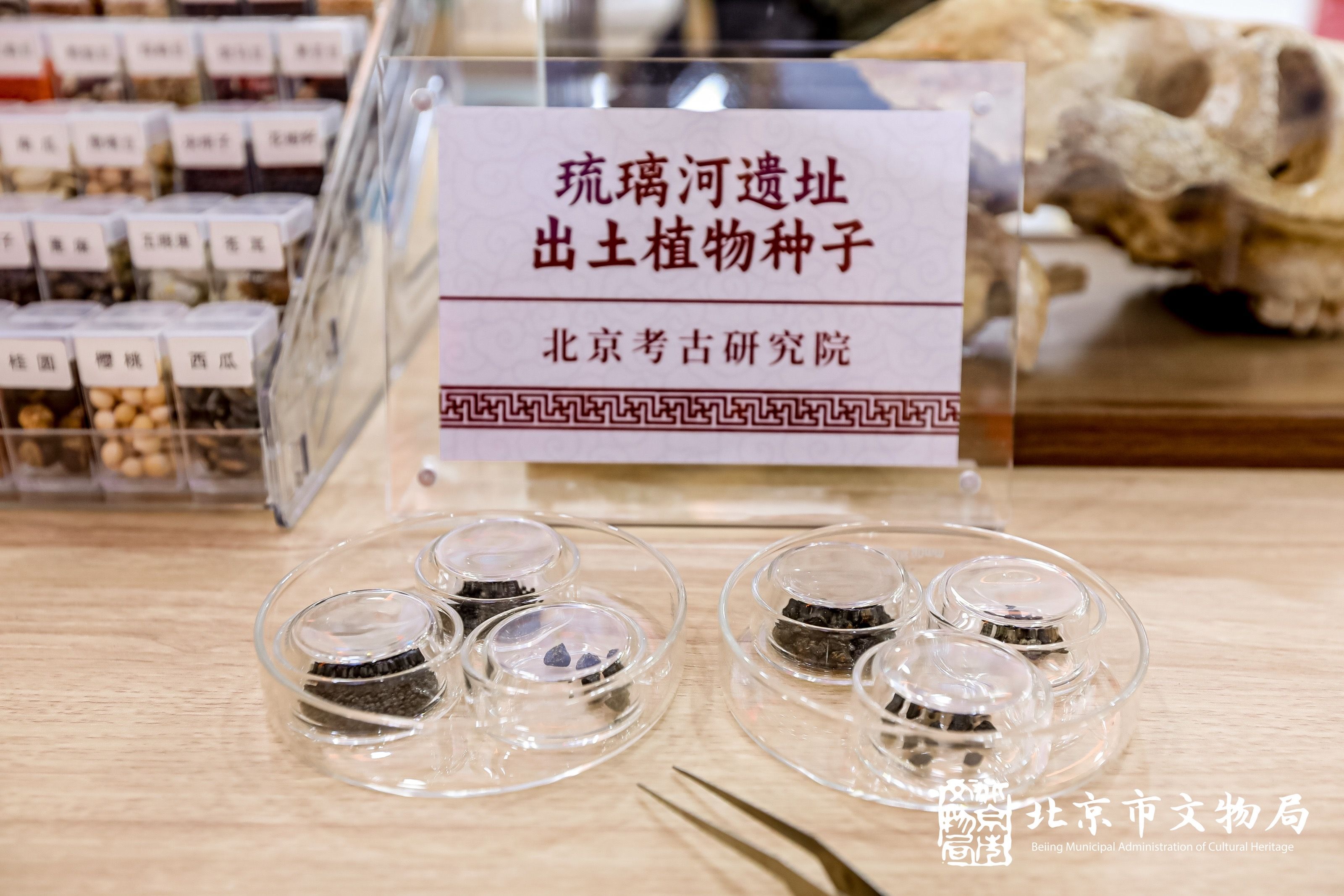 琉璃河遗址出土植物种子在现场展示。北京市文物局供图