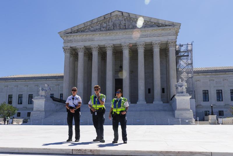 2024年7月1日,警察在美国首都华盛顿的美国联邦最高法院前执勤。新华社发(亚伦摄)