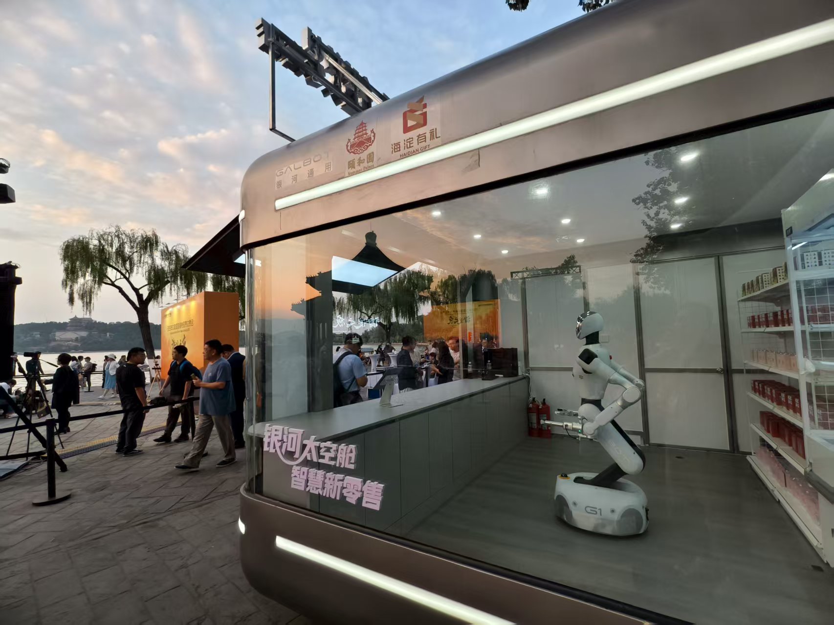 本次在颐和园亮相的首个售卖文创产品机器人零售店的银河太空舱同样亮眼。据了解,这次隆重推出全球首个深度融合文化遗产与具身智能机器人科技的银河太空舱,标志着“银河太空舱”正式开启在颐和园的展示运营。本次合作以“游园遇上机器人,消费新场景展示季”为主题,是银河通用与颐和园管理处的首次联名活动,同时也是银河通用与海淀文旅集团达成的首次官方合作。