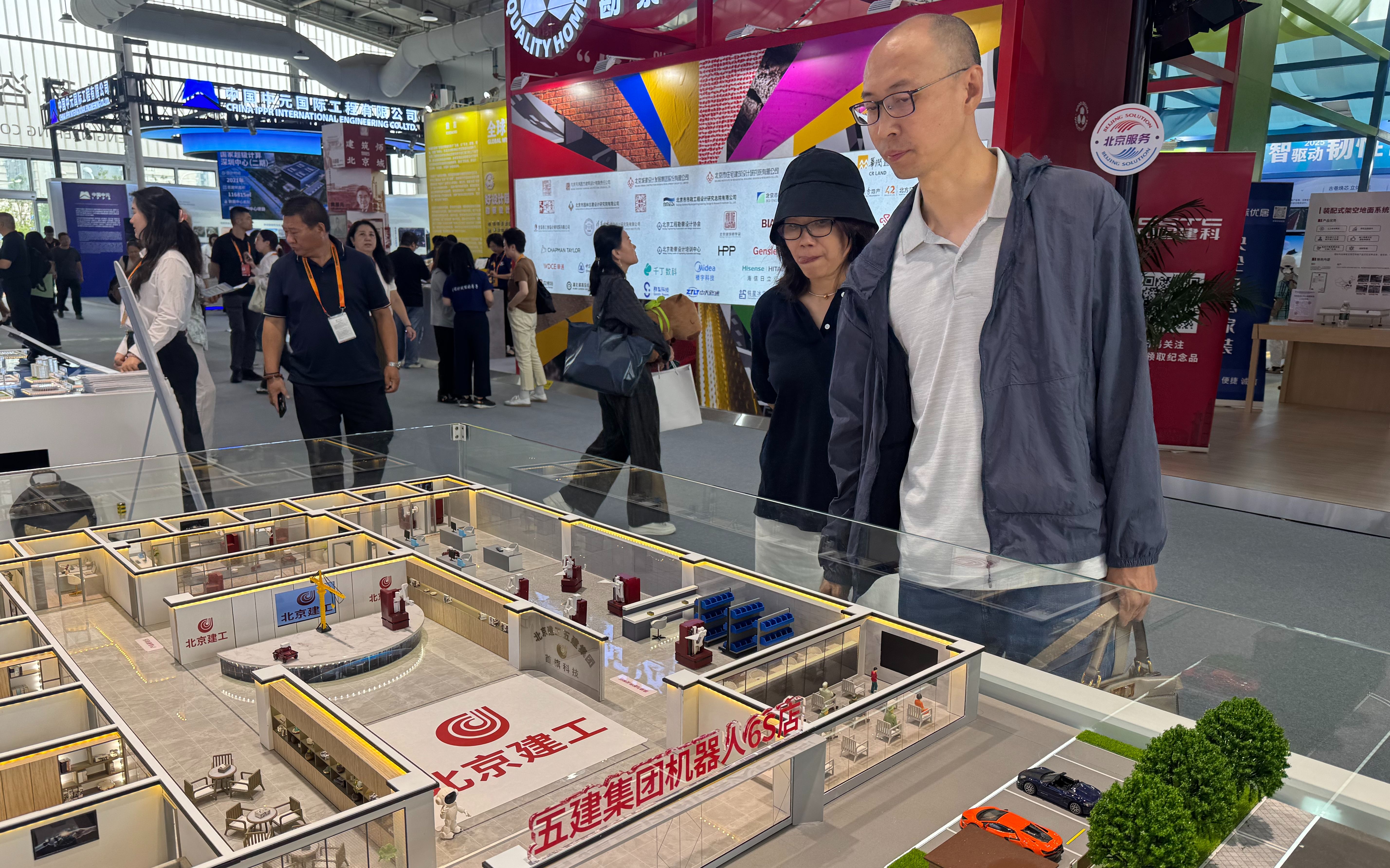 通过现场沙盘,观众可以直观了解如何像购车一样买卖、租赁、定制各类工程建造机器人。据北京建工五建集团相关负责人介绍,“6S店”不仅可以完成工程建设机器人从销售交付、配件保障,到售后维护的全流程,还可以进一步延伸至人员能力提升、方案顶层设计及现场落地执行等环节。