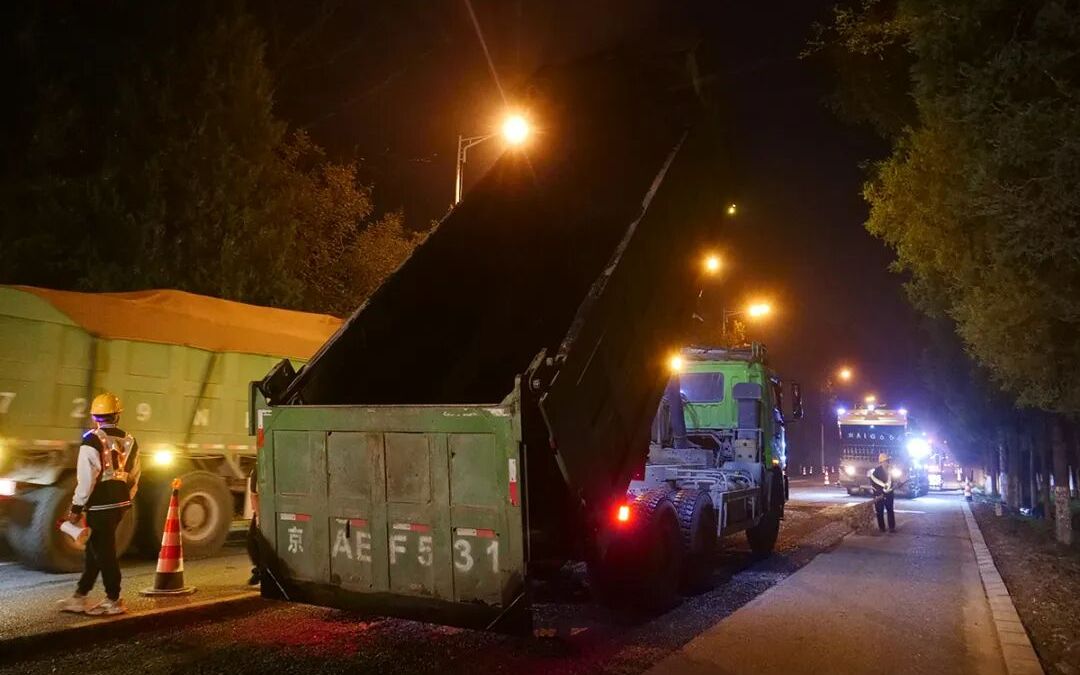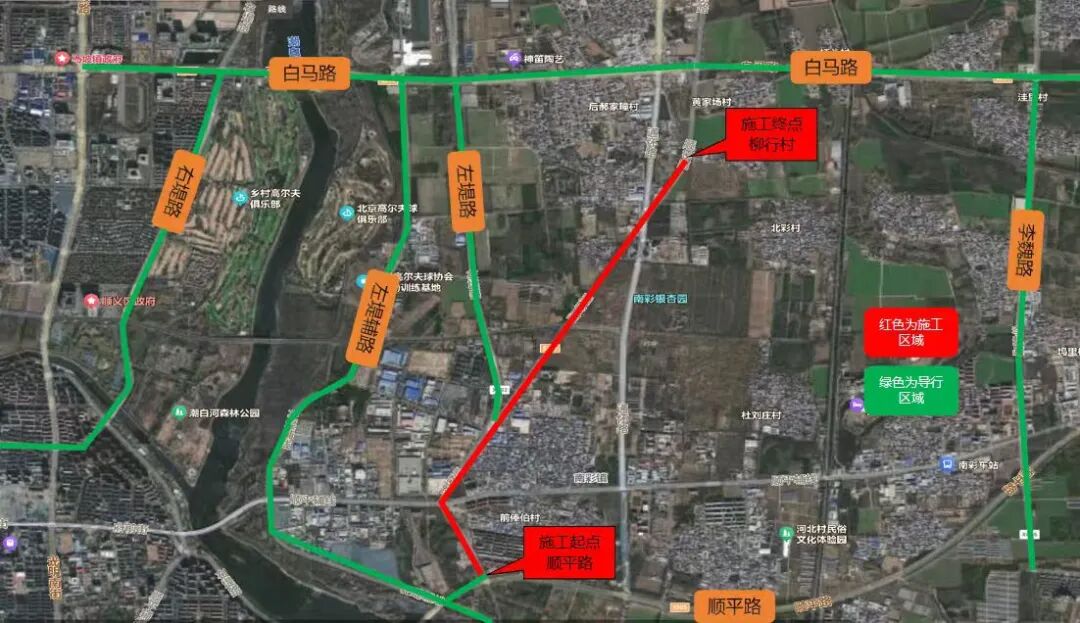 工程南起顺平路,北至柳行村东,全长5公里,主要施工内容包括道路病害处理、沥青路面摊铺、防撞护栏更换等。工程采取“半幅施工、半幅导行”模式,施工区域与通行区域通过物理隔离,确保市民出行不受影响。