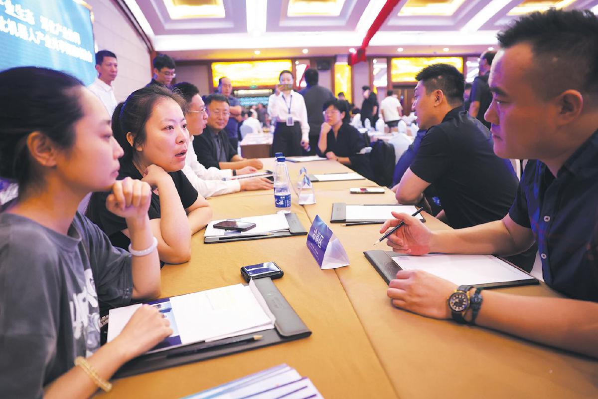 9月16日下午,北京·河北机器人产业共享智造对接会在京举行。在洽谈区,唐山高新区相关部门负责人与企业代表交流。新京报记者 王飞 摄