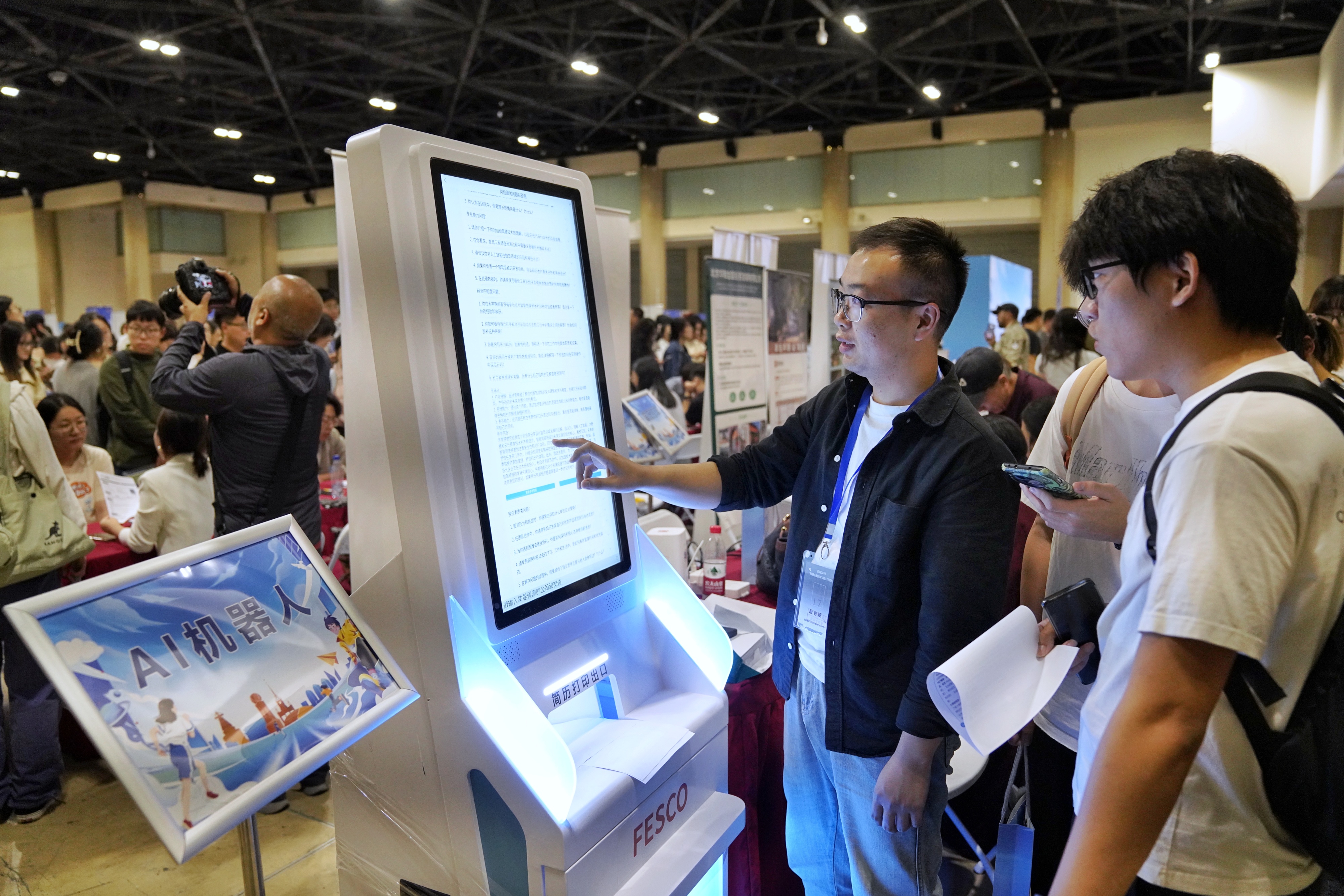 在今年的招聘会现场,“AI简历诊断”成为亮点。新京报记者 薛珺 摄