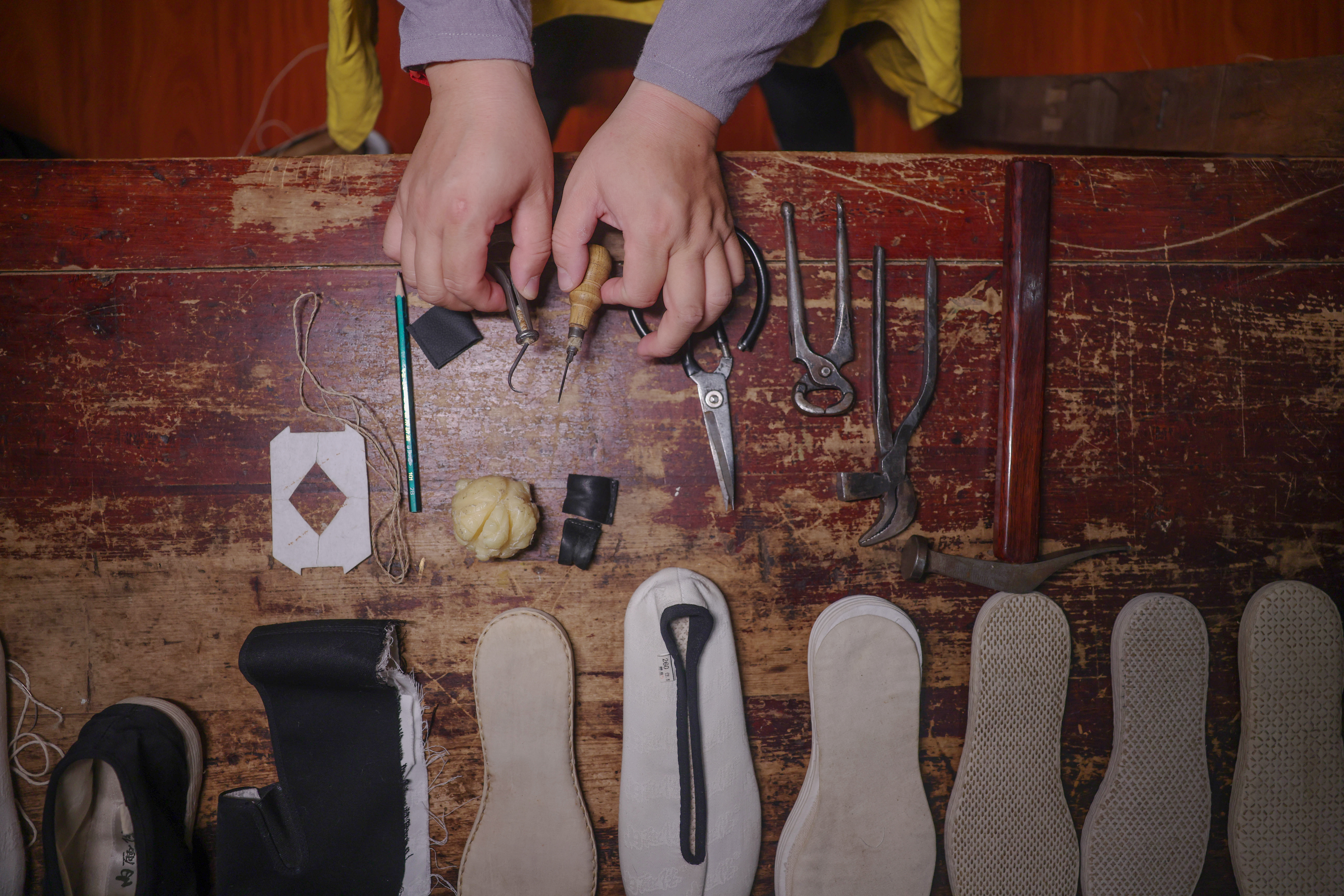 一提到鞋,任晨阳的言谈中总是不经意就流露出师父传授的经验。这是他与师父的相同之处,他们都努力地将这门手艺延续下去,但任晨阳觉得,自己应该与师父有一些不同。“在我师爷或者师父那一代,他们更多地考虑传承手艺。但我是‘80后’,我认为不仅要传承、要复刻几近失传的手艺,更要长江后浪推前浪,需要创新。不能只是师父的影子。”