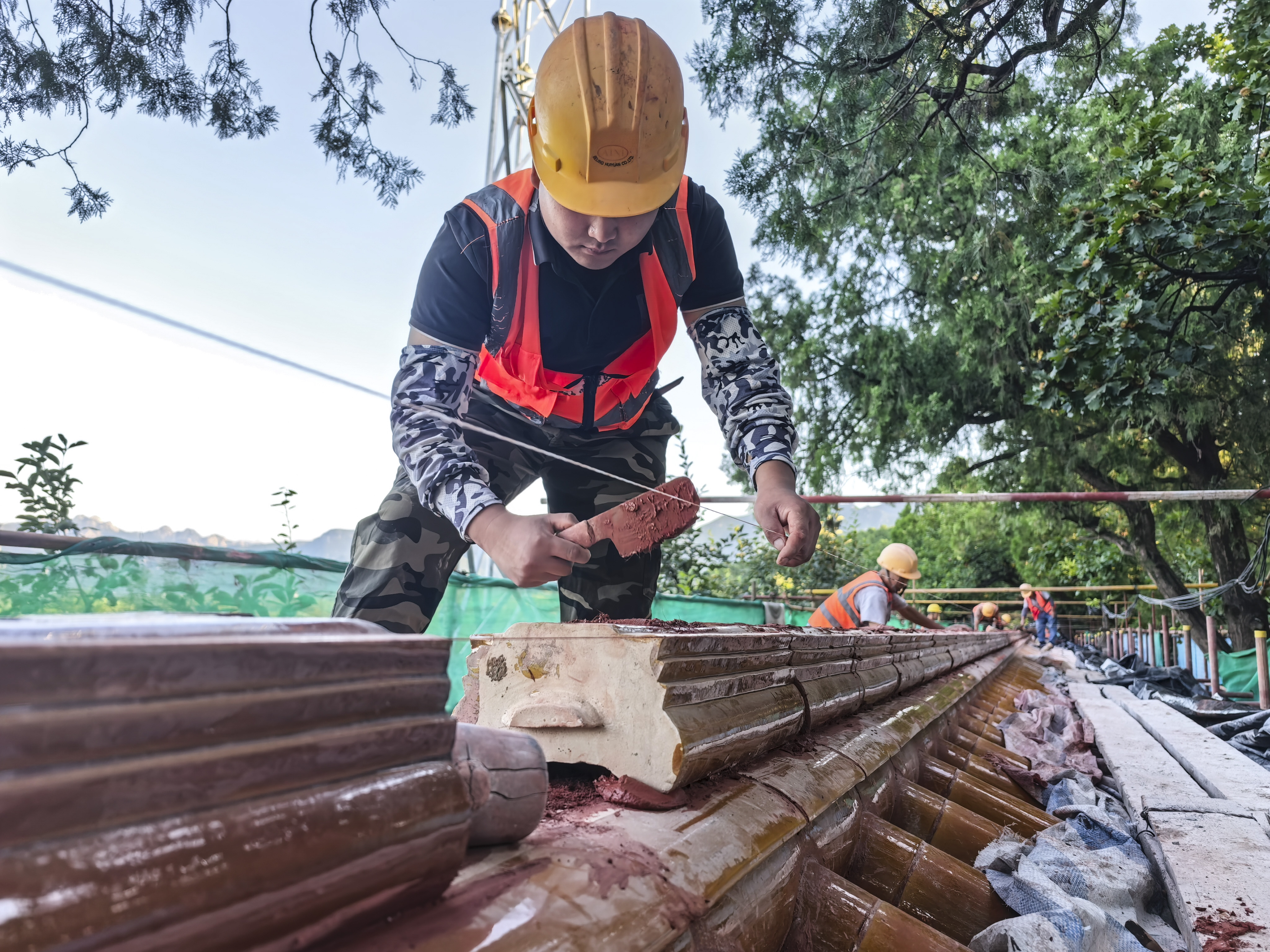 可这行也是真苦。“泥瓦匠是在所有文物修复行当里最苦最累的。”伊德林说,活儿都在户外,得在高墙屋脊上拼手艺,在风吹日晒里挣生活。春秋尚可,北京夏天漫长,修复师得耐得住烈日炙烤和蚊虫叮咬。一年到头,人随项目走,几乎没有休息,只有寒冬腊月才能回家。