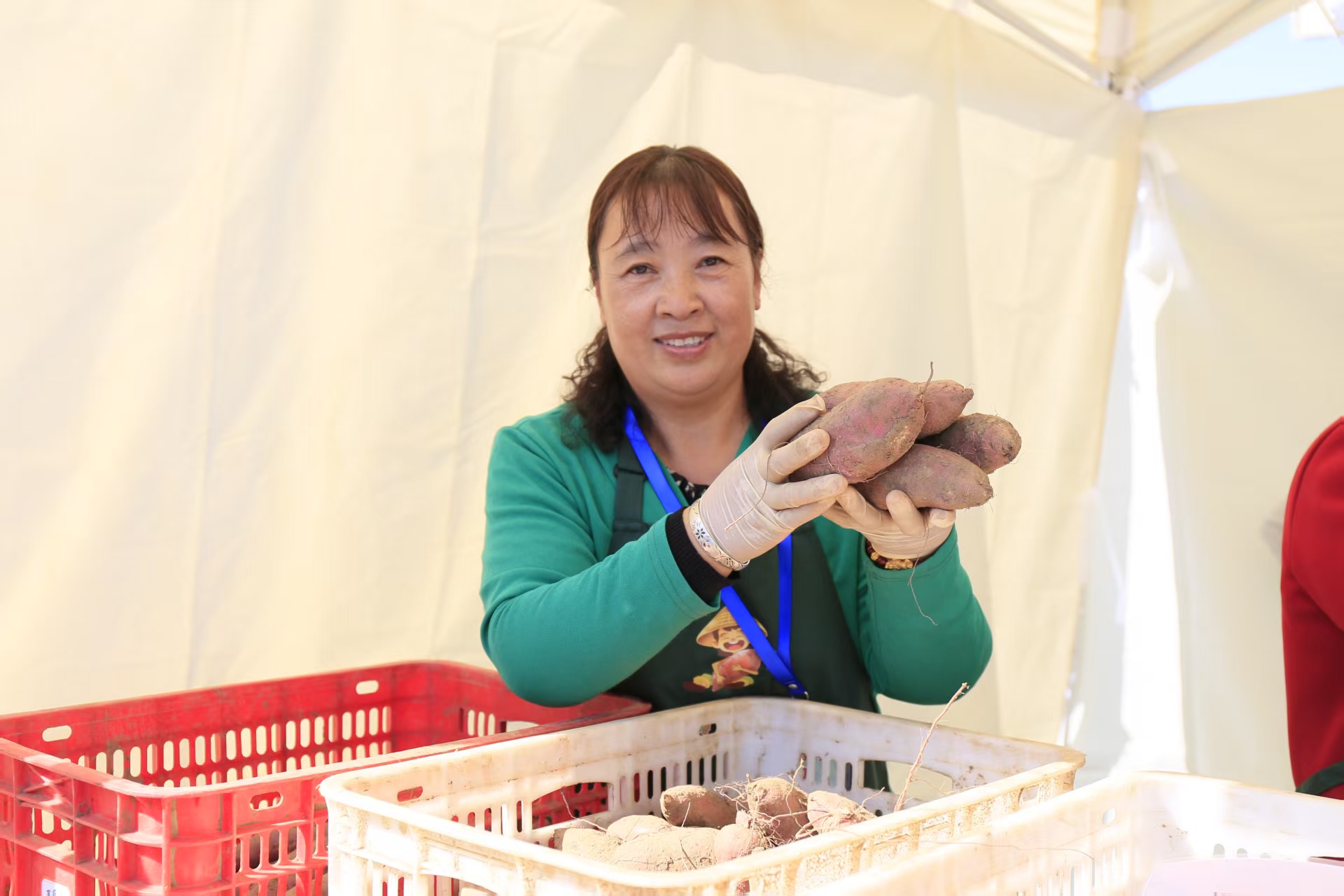 在开幕式现场,6名“德孝木林人”代表共同拔出象征丰收的红薯,寓意着木林镇丰收季的甜蜜与喜悦,丰收正式开启。在沿展区,观众可以参观特色农产品展示区,大韩庄 “韩晓农” 红薯、茶棚安辛庄苹果、贾山甘蔗等20余种木林镇地标农产品集中亮相。