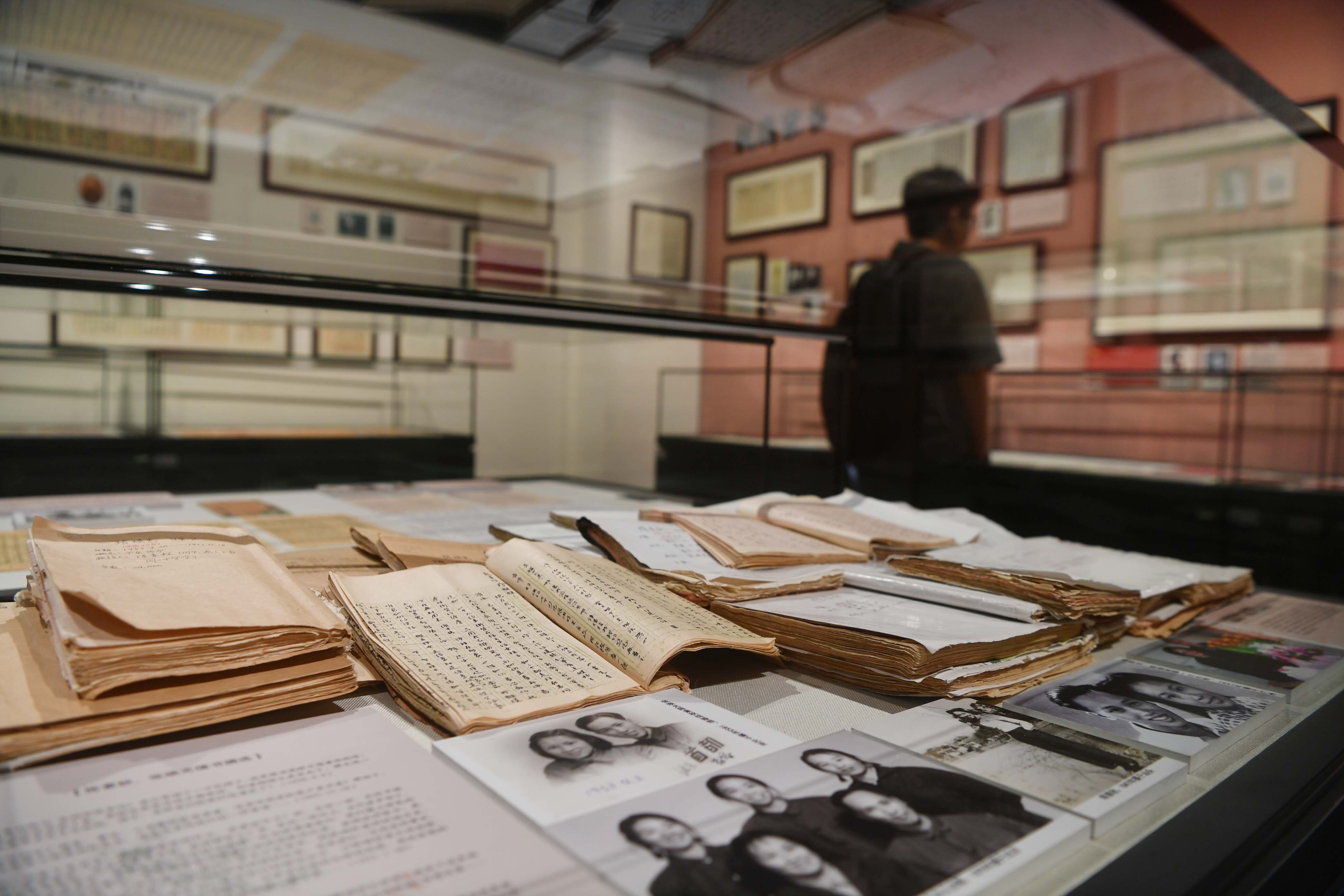 裴久诚站在透明的展柜前注视着前不久捐赠的叔叔裴超的家书。新京报记者 李木易 摄
