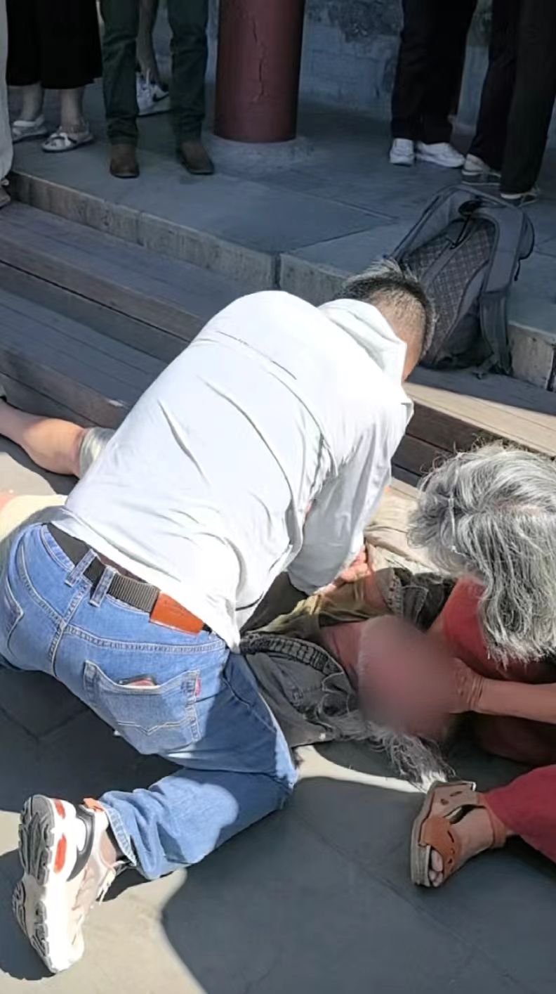 外国游客颐和园内突然昏迷倒地,热心游客紧急施救