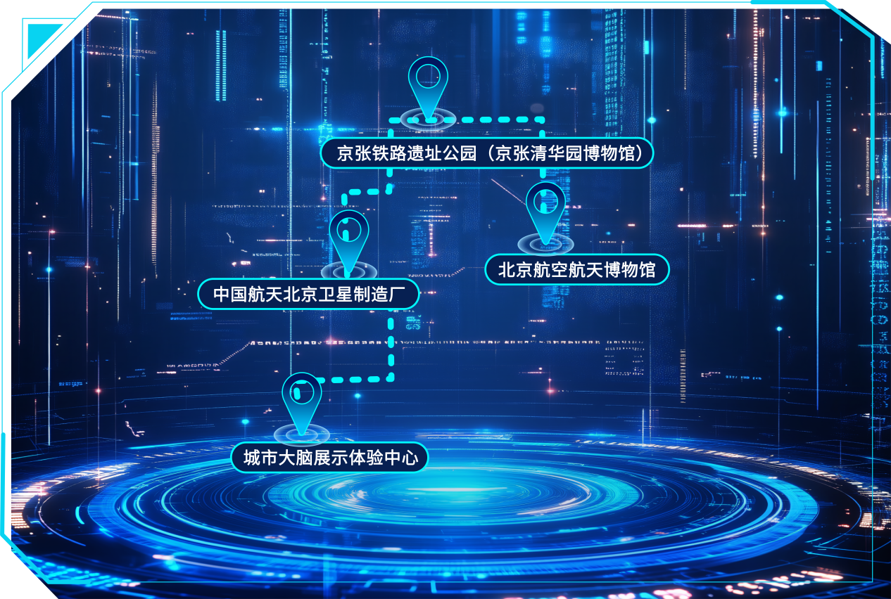 线路点位:城市大脑展示体验中心→中国航天北京卫星制造厂→京张铁路遗址公园(京张清华园博物馆)→北京航空航天博物馆